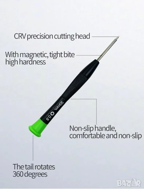 • Отвертка за мобилни телефони, iPad, лаптопи: С възможността за разглобяване и ремонт на мобилни телефони, iPad и лаптопи, този комплект инструменти е идеален за тези, които трябва да отстраняват неизправности на електронни устройства.