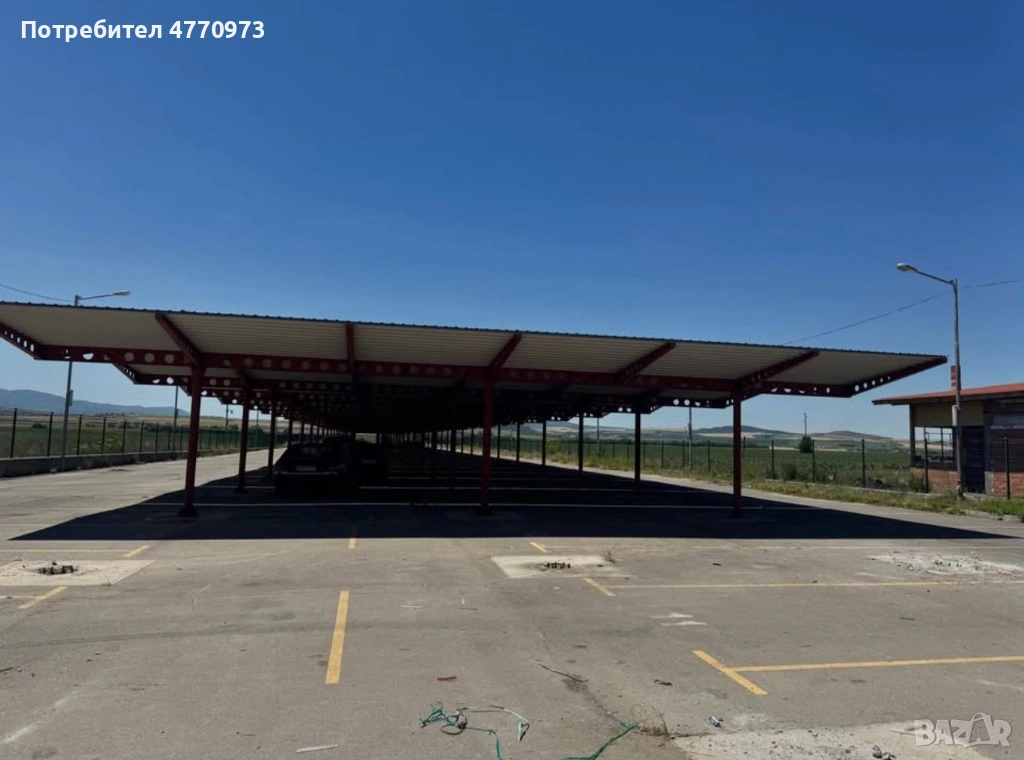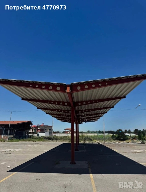 Продавам 32 броя масивни метални навеси, в перфектно състояние, подходящи за паркинг, складови площи, пазарни площи или индустриално използване.