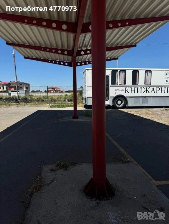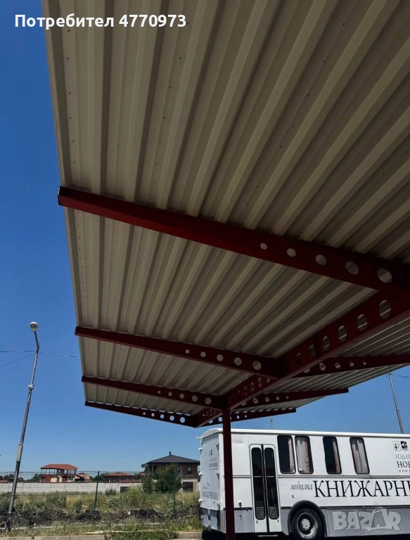 • Конструкция: Здрава метална основа с покрив от гофрирана ламарина
