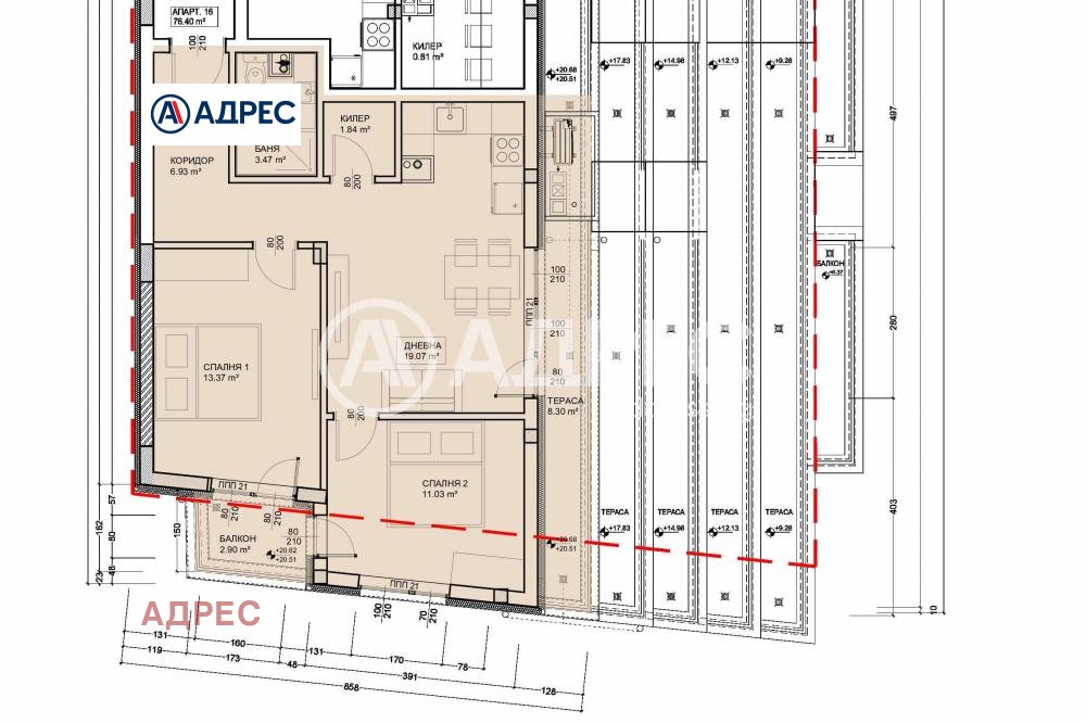 Адрес Недвижими имоти предлага просторен тристаен апартамент в луксозна жилищна сграда в кв. Левски, гр. Варна! Имотът е със следното функционално разпределение: коридор, дневна с кухненска част , родителска спалня ,втора спалня , баня с тоалетна, килер, просторна тераса и балкон. Към апартамента има килер!