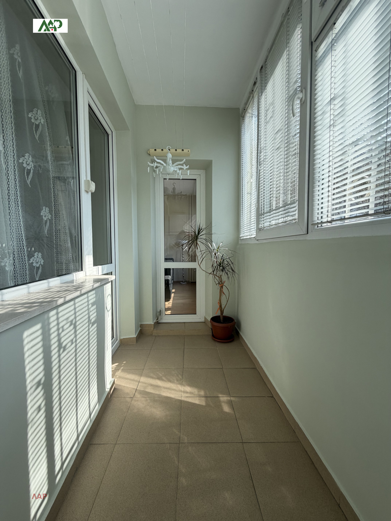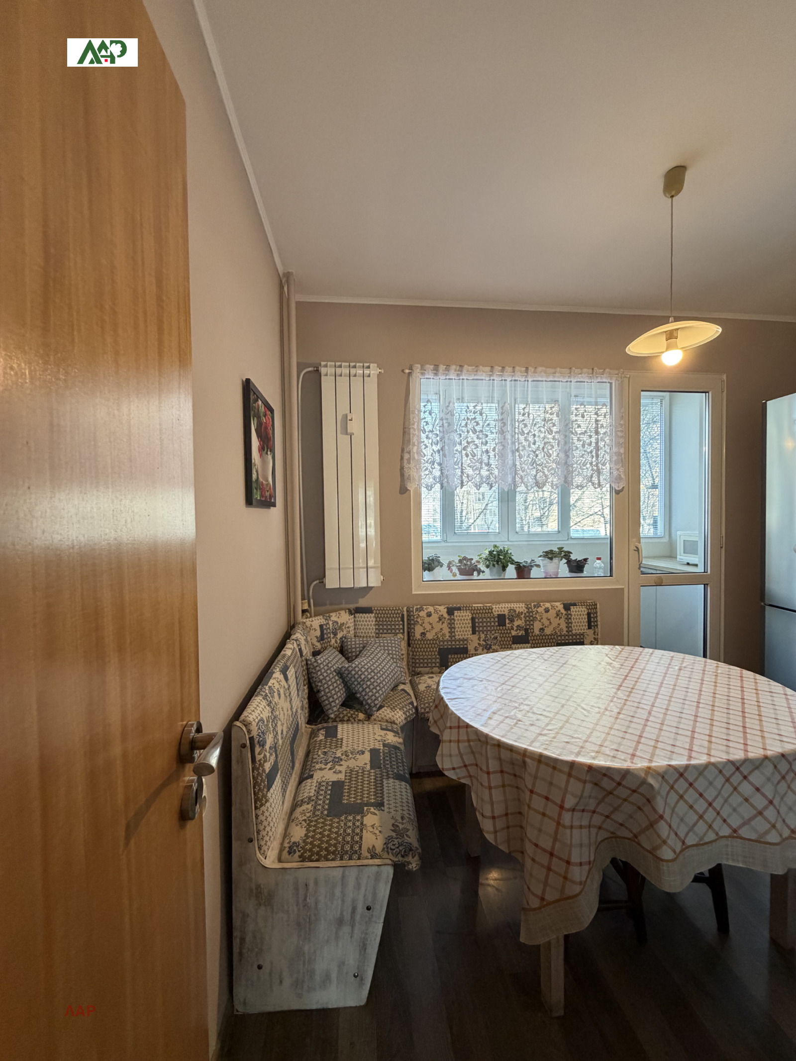 Предлагаме ви уютно и светло и топло жилище след освежителен ремонт. Разпределението е- дневна, кухня, две самостоятелни спални- детска и родителска, баня с тоалетна, мокро помещение, склад, изцяло обзаведена самостоятелна кухня с остъклен балкон, пригоден за изнесени кухненски дейности и втори остъклен балкон, обслужващ родителската спалня и дневната. Апартаментът, е изцяло обзаведен с всичко необходимо - легла и гардероби в спалните, мека мебел, холна секция и телевизор в дневната, всички битови електроуреди и телевизор в кухнята. Отоплението е на централен ТЕЦ. Хубава входна врата, поддържан вход, тихо и спокойно място. Подовите настилки са теракот и ламиниран паркет. В близост до апартамента- детска градина, училища, магазини, удобен градски транспорт- трамвайни и автобусни линии. Много подходящ за наемане от семейство. Готов за нанасяне.
