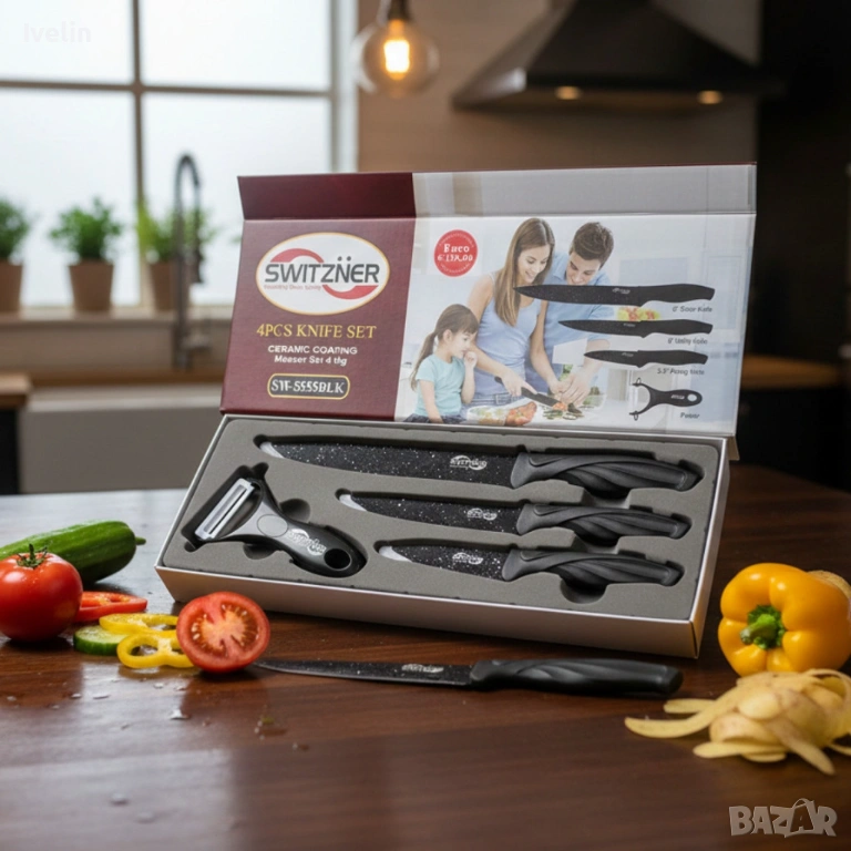 Комплект ножове Switzner от 4 части с керамично покритие и ергономични силиконови дръжки – Стил и пр