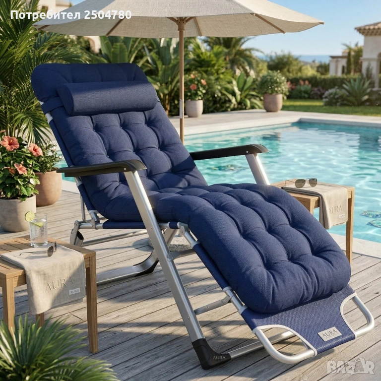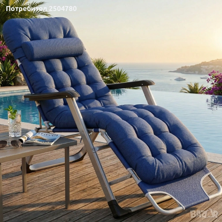 Луксозен шезлонг за градина и басейн - Мека ватирана възглавница, дишаща материя Textoline и ергоном, снимка 1 - Други - 53902567 Луксозен шезлонг за градина и басейн - Мека ватирана възглавница, дишаща материя Textoline и ергоном, снимка 2 - Други - 53902567 1/2