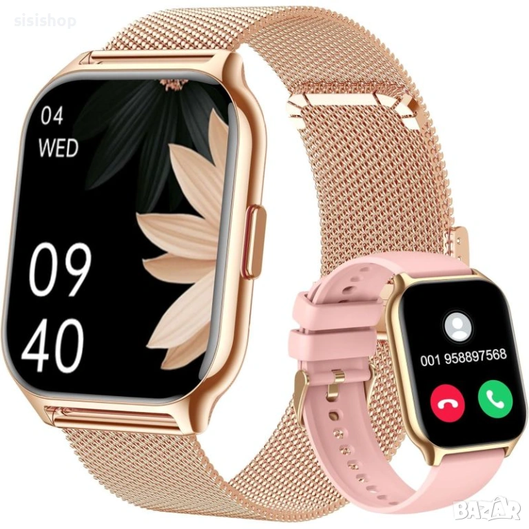 Златист смарт часовник с 2 инча екран и две каишки в комплекта