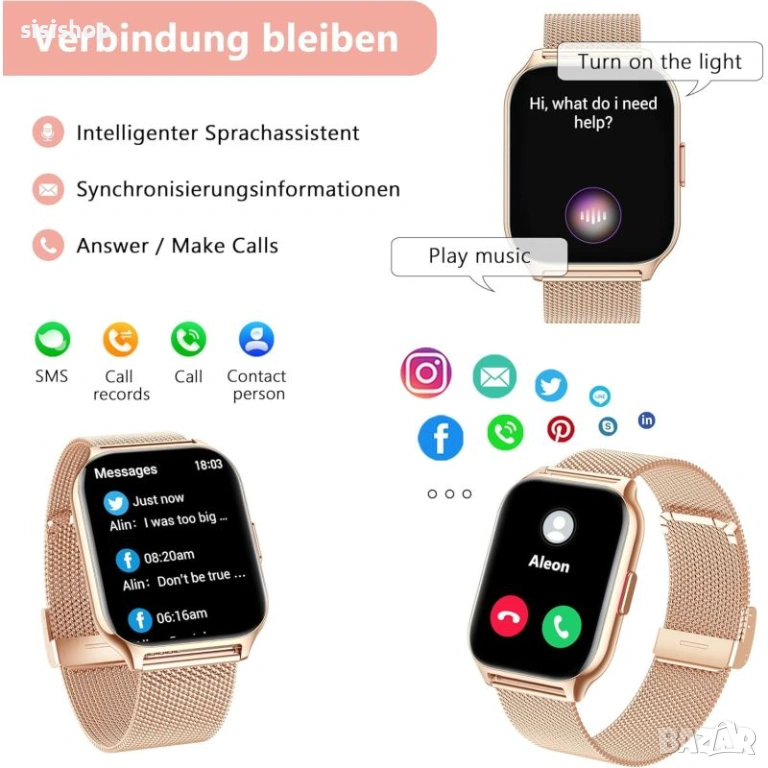 Придайте блясък на своята визия с този нов златист смарт часовник, който е символ на стил и функционалност. Устройството разполага с впечатляващ 2-инчов правоъгълен дисплей с висока резолюция, който осигурява кристално чист образ и лесна навигация. Комплектът е уникален, защото получавате две каишки – елегантна златиста метална верижка за изискани поводи и мека розова силиконова каишка за спорт и ежедневие. Със своята IP68 водоустойчивост и поддръжка на безжично зареждане, този часовник е не само красив, но и изключително практичен. Свържете го лесно чрез Bluetooth с вашия телефон и следете важните известия директно на китката си.