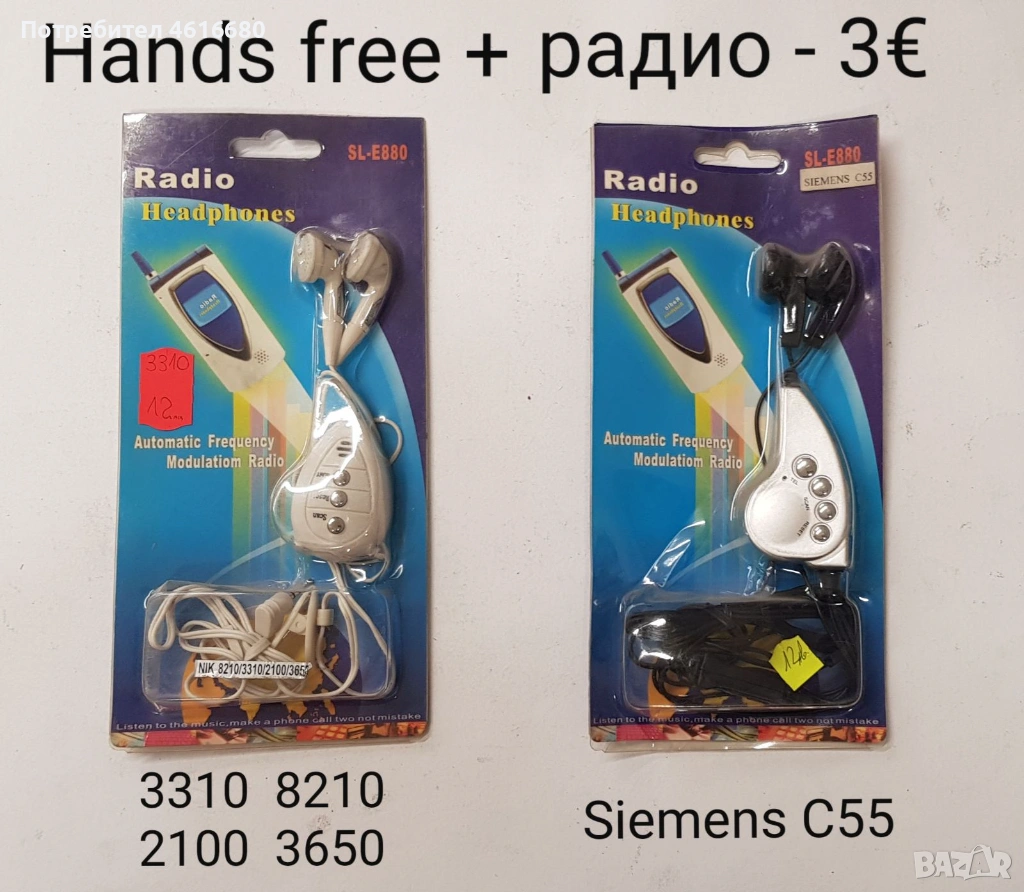 Hands free / Свободни ръце с Радио за Samsung,Nokia 8210,8310,8250,7210, 7250, 3310, 2100, 3650, C55 → Обява 53902706