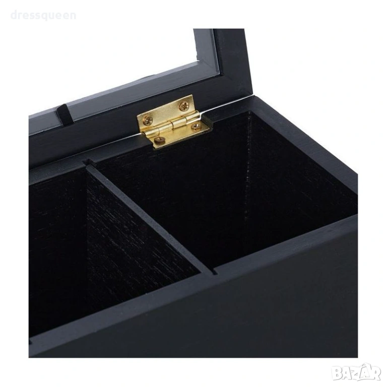 1 брой Дървена кутия за чай (Черен мат) с прозрачен горен панел.