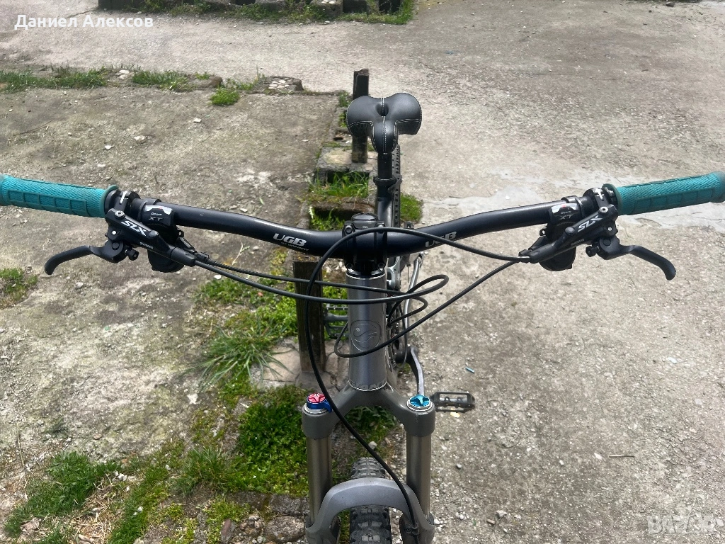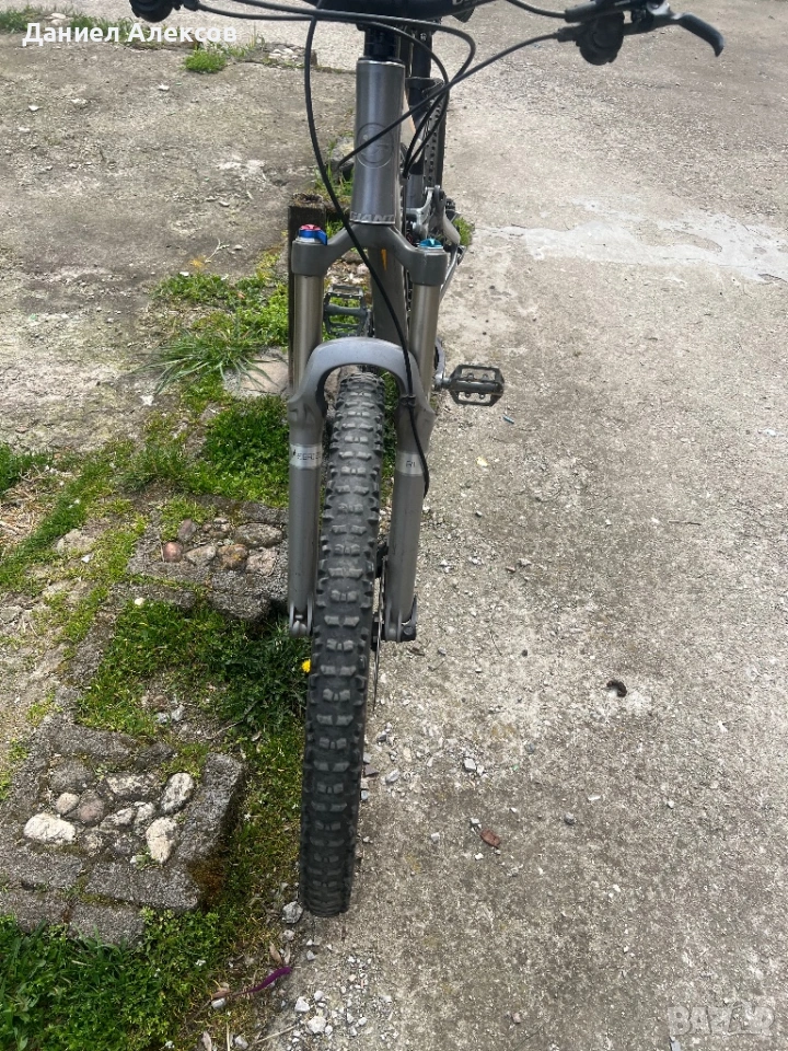 Алуминиев велосипед 26 цола гуми ,27 скорости в добро състояние.Въздушно окачване Fox,хидравлични спирачки slx.Забележка лека подбивка долу на рамката вижда се на една от снимките .Само лично предаване без куриери.Мекица.