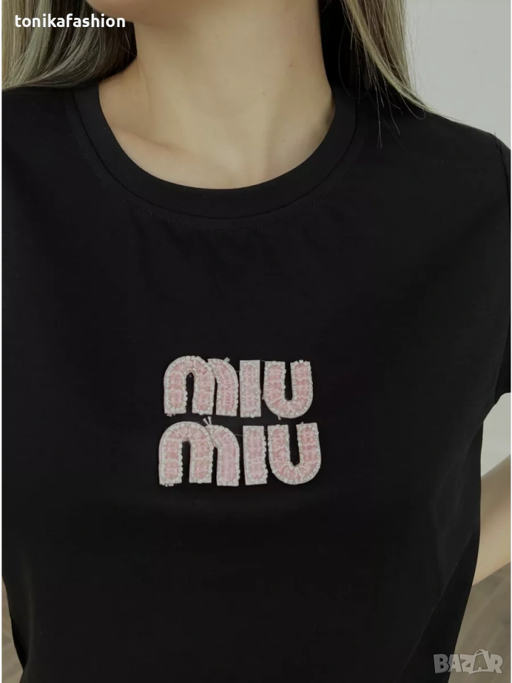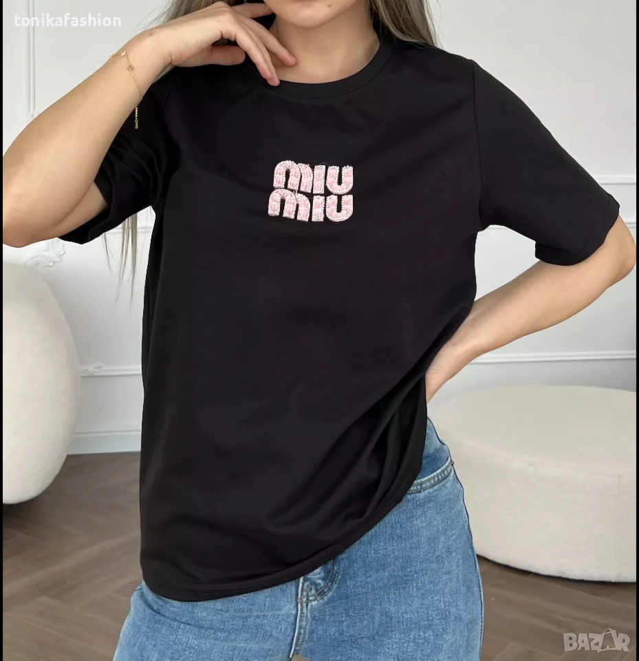 Тениска с лого с маниста. Свободна класическа кройка - дължина 60см