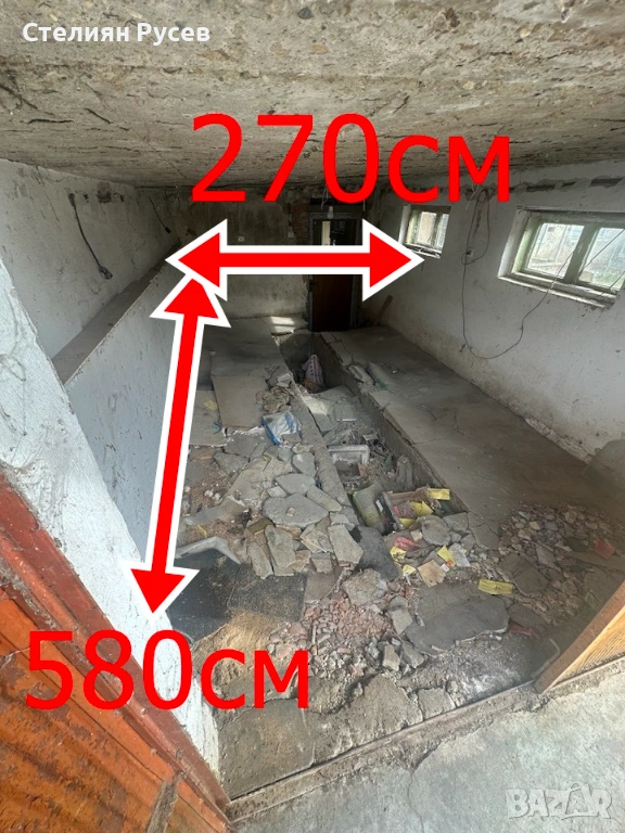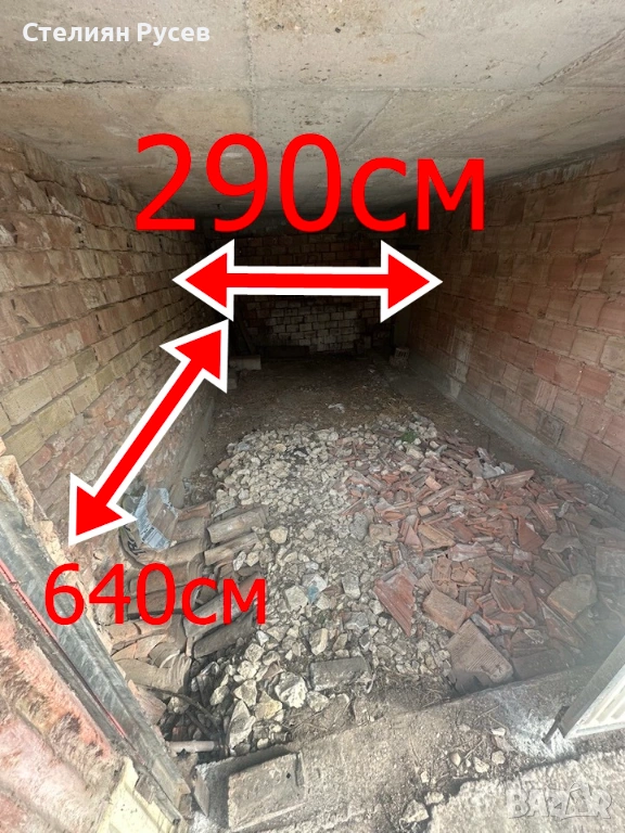 230/173см е вратата на горният гараж, вътре е 270см широк и дълбок 580м