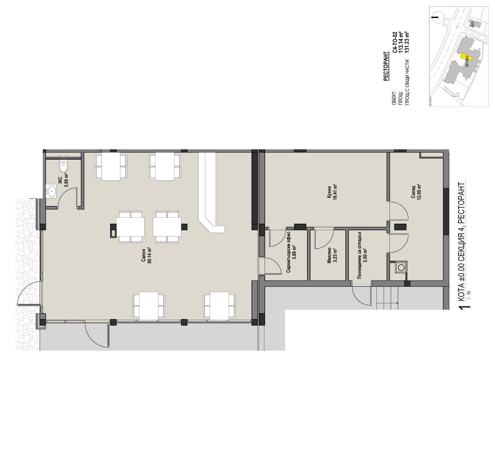 Ресторант 113,14кв.м. застроена площ, 131,23кв.м. с общи части 656 150