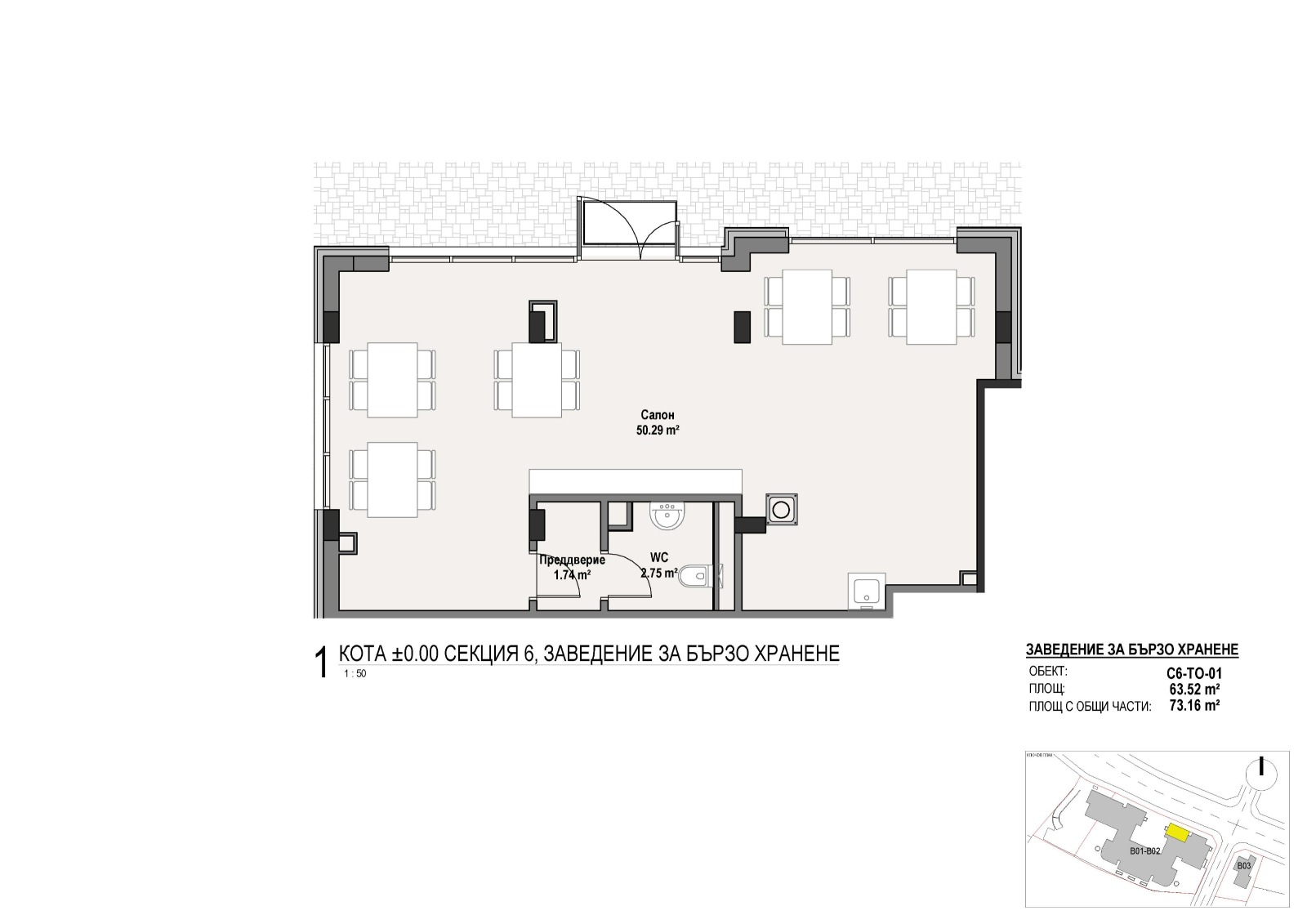 Заведение за бързо хранене 63,52 кв.м. застроена площ, 73,16кв.м. с общи части 365 800