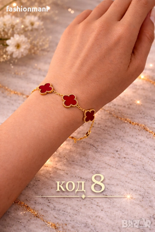 Не се влияет от намокряне и наподобяват истинско златно бижу. Ще бъдете винаги в центъра на вниматието. Модели на гривните на Van Cleef. Гривните са с дължина 18см. и имат удължение 4см.