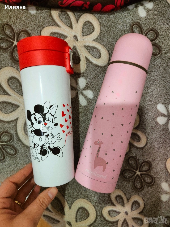Два броя термоси, Мини Маус е нов - 450мл вместимост, другият е 500мл