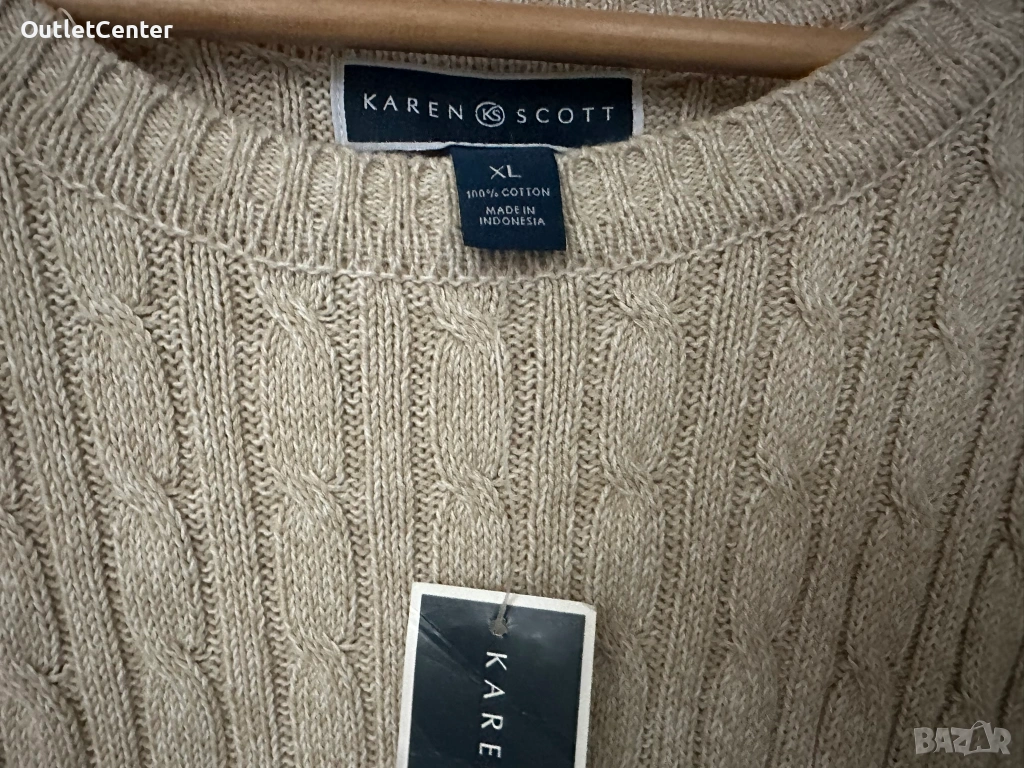 Нов пуловер Karen Scott, наличен в бежаво, 100% памук, размер XL, от
