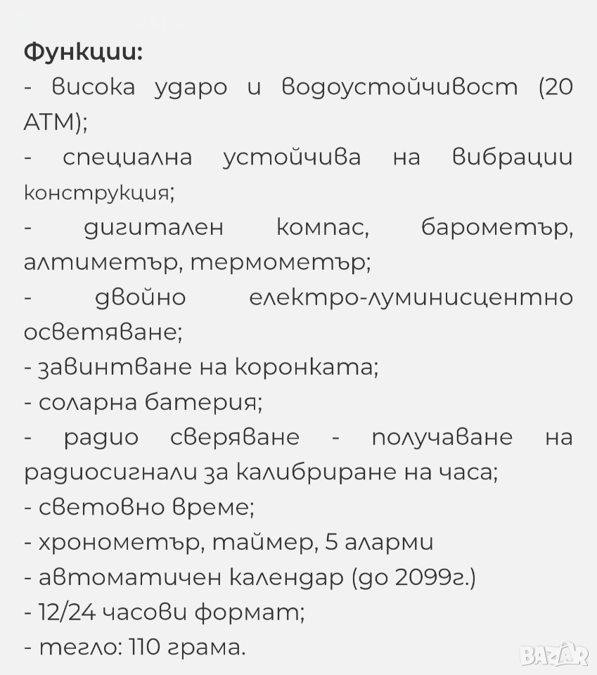 - дигитален компас, барометър, алтиметър, термометър;