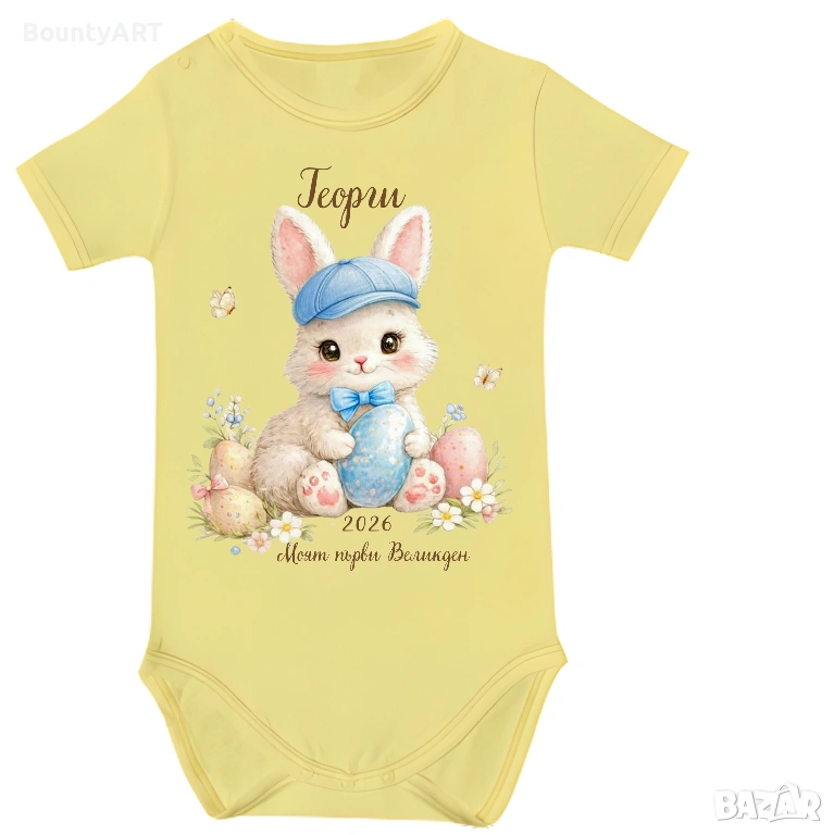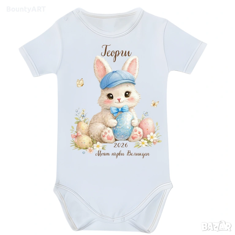 Персонализирано бебешко боди за момченце „Моят първи Великден“ с име, надпис и дизайн по избор