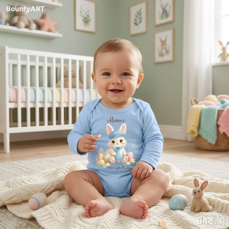 Персонализирано бебешко боди за момченце „Моят първи Великден“ → Обява 53903803