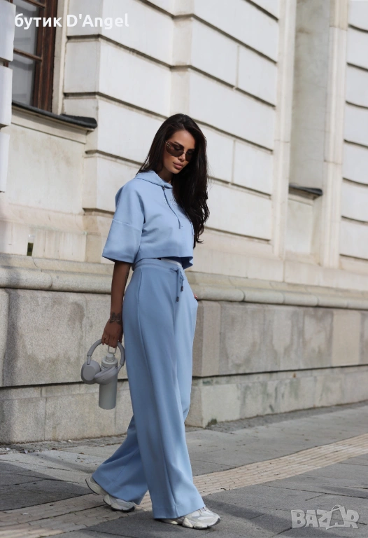 Сет в ефектен небесносин нюанс, създаден за динамичното градско ежедневие и моментите, когато комфортът и стилът трябва да вървят заедно.