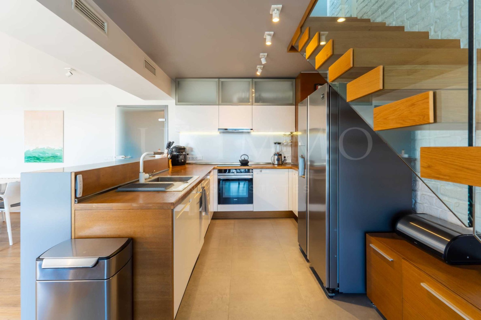 Имотът е с обща площ от 178 кв.м, разположен на 8-и етаж с красива панорама към града и морския залив.