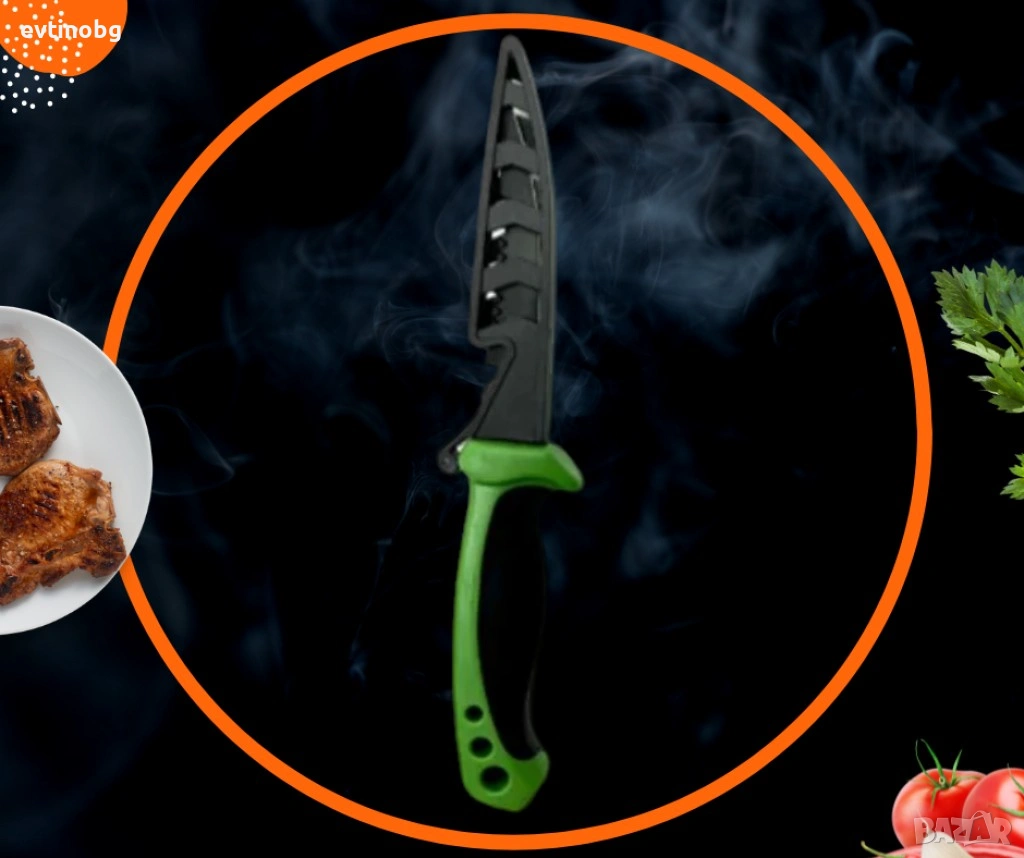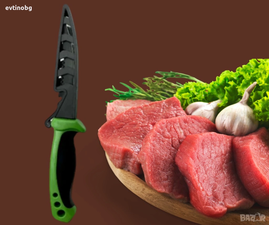 Нашият нож с дължина 25.5 см и зелен цвят е идеалният избор за тези, които ценят качеството и стил в кухнята. С неговата острота, издръжливост и привлекателен дизайн, този нож ще бъде ценен помощник във вашето кулинарно изкуство.