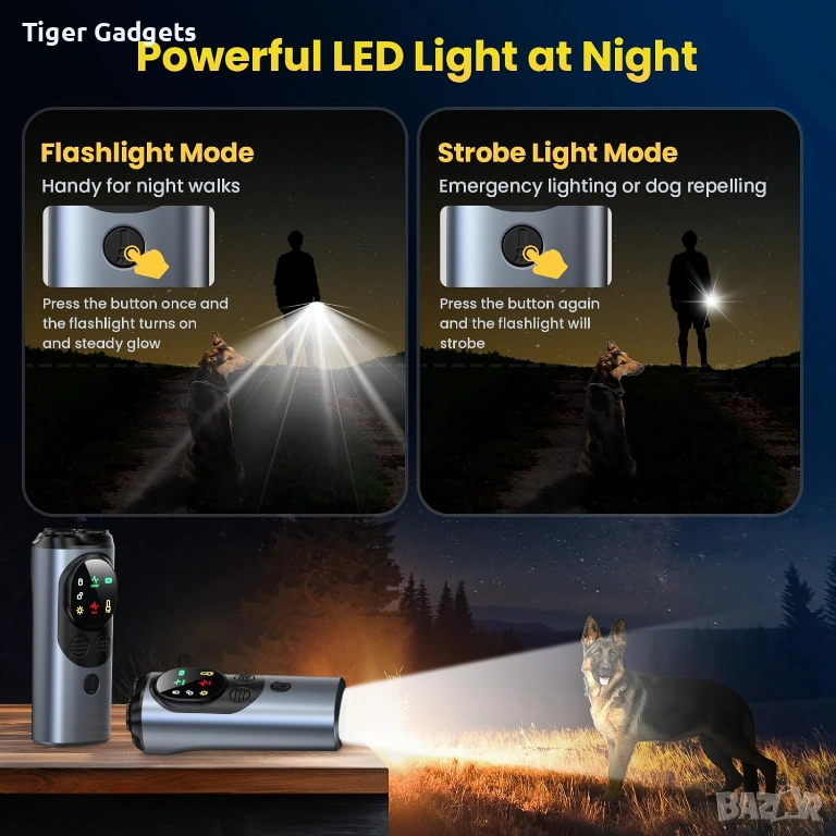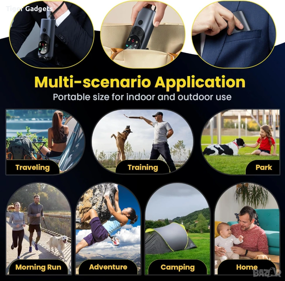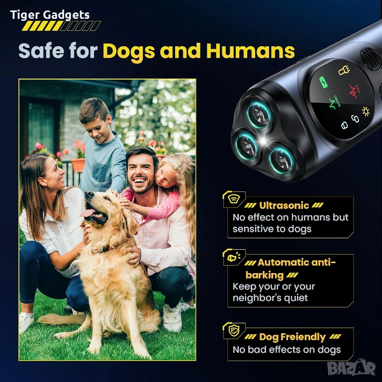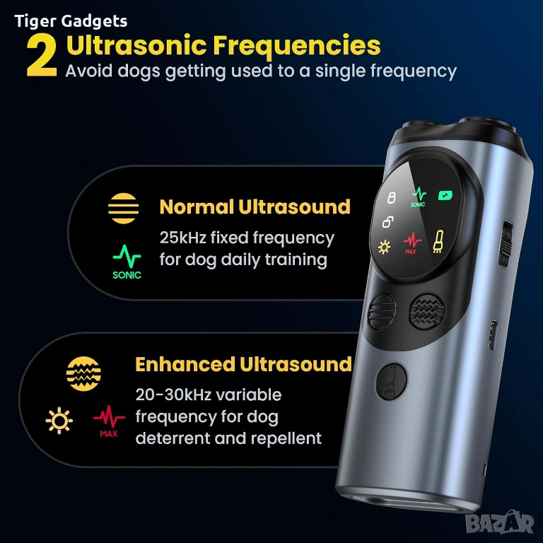 Anti Bark Device for Dogs е преносимо ултразвуково устройство тип кучегон, създадено за контрол и обучение на кучета, като помага за намаляване на прекомерния лай по безопасен и хуманен начин. Подходящо е както за домашни любимци, така и за кучета в околната среда.
