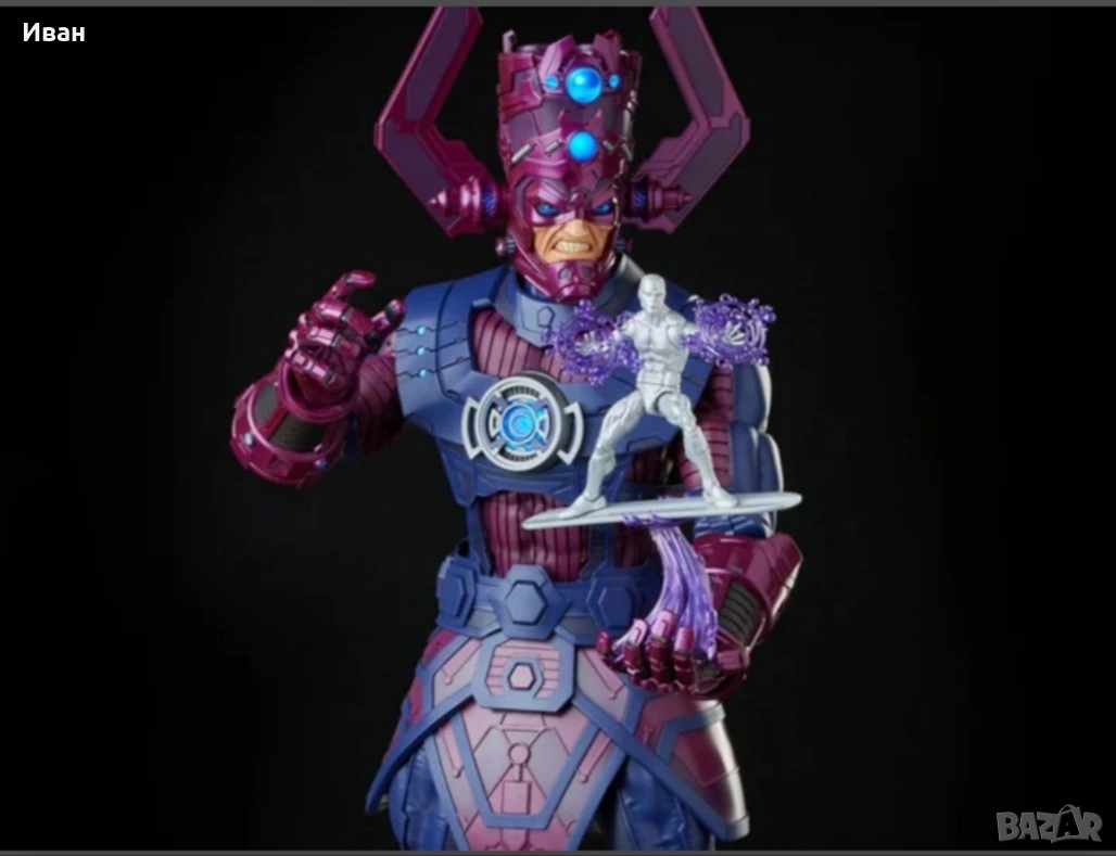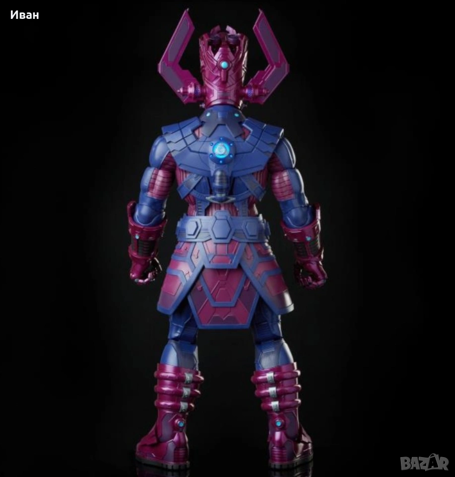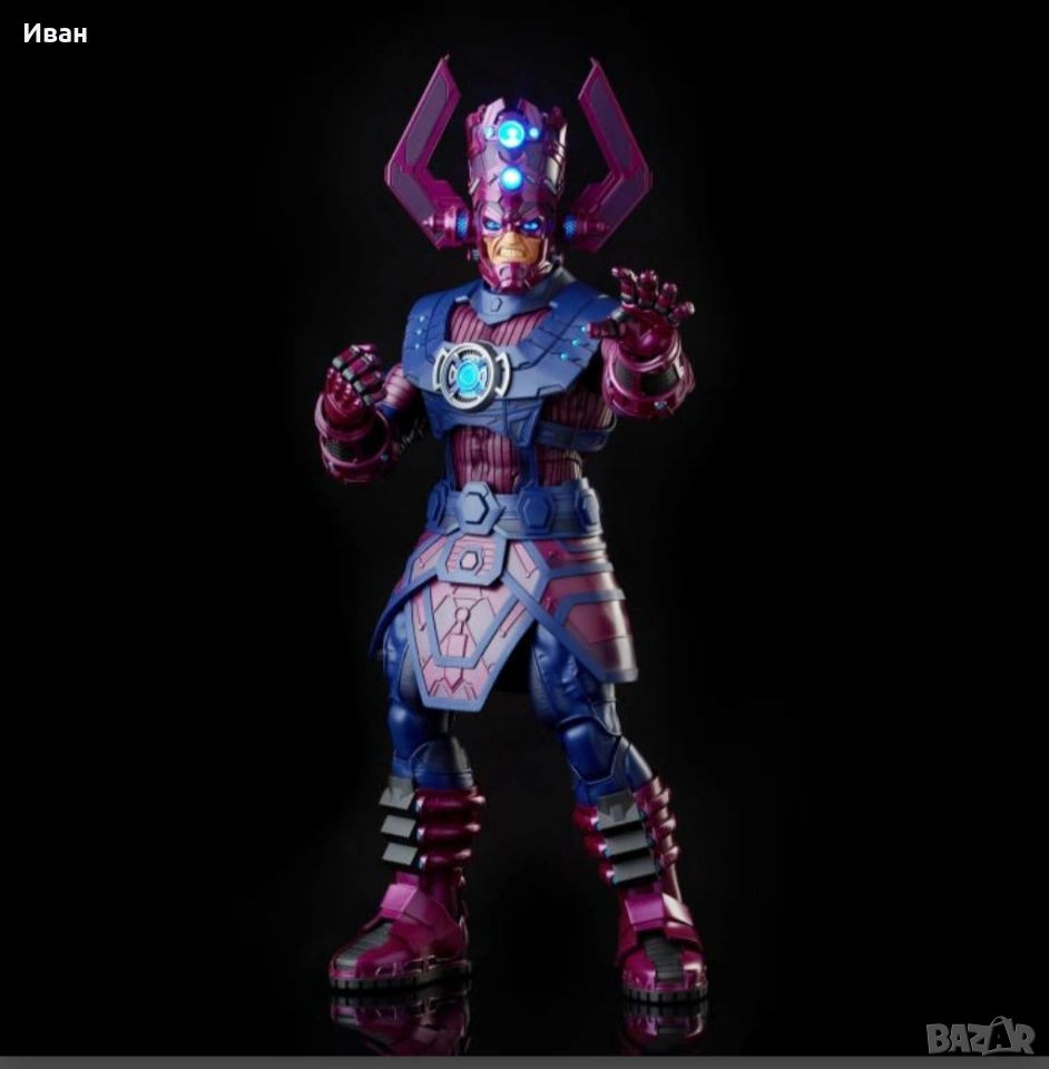 Ексклузивна фигура на Галактика и неговите предводители ! Ограничена наличност. Артикулът е чисто нов и в отлично състояние Вижте ръководството за оценяване на пакети Следните бележки се отнасят за този продукт Максимално количество на клиент Вижте допълнителните подробности по-долу за повече информация. Описание на продукта Поглъщащият Светове. Този, Който Гладува. Живо въплъщение на ентропията и оцеляването. Универсална константа. Сила на природата. Hasbro Pulse с гордост представя Marvel Legends Galactus! Почти всемогъщо същество, което трябва да погълне цели планети, за да оцелее, Галактус не се интересува от животите, обречени от глада му. Неговата сила е отвъд разбирането на смъртните... и апетитът му е безграничен. От дълбините на Космоса на Marvel, един от най-емблематичните герои в историята на комиксите пристигна като следващия проект на Marvel Legends HasLab. Галактус е наистина неземна фигура във и извън Вселената на Marvel и тук ще имате шанс да му помогнете да оживее. Фигурката на г-н Фантастик не е включена Характеристики на продукта Галактус: 32 инча (81,28 см) Други фигури 6 инча (15,24 см) Изработен от пластмаса Базиран на героите от комиксите на Marvel Премиум детайли Галактус разполага с над 70 точки на артикулация. Фигурката на г-н Фантастик не е включена Съдържание на кутията Фигура на Галактус 3 лицеви панела. Фигура на Франки Рей (Нова). Стойка с огнен ефект. Фигура на Сребърния сърфист : Сърф дъска 2 елемента с ефект на космическа енергия, стойка . Фигура на Морг с брадва.