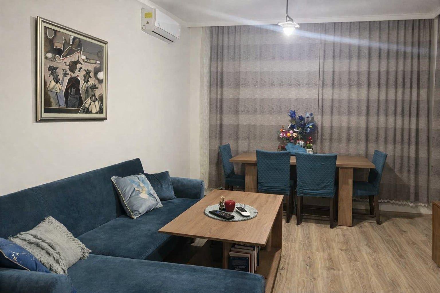 Апартаментът е напълно обзаведен и готов за нанасяне, отоплява се на ток и разполага с климатик.