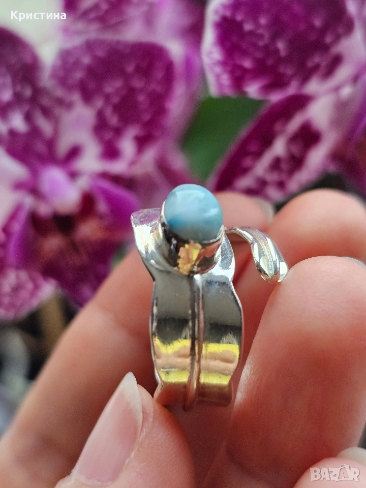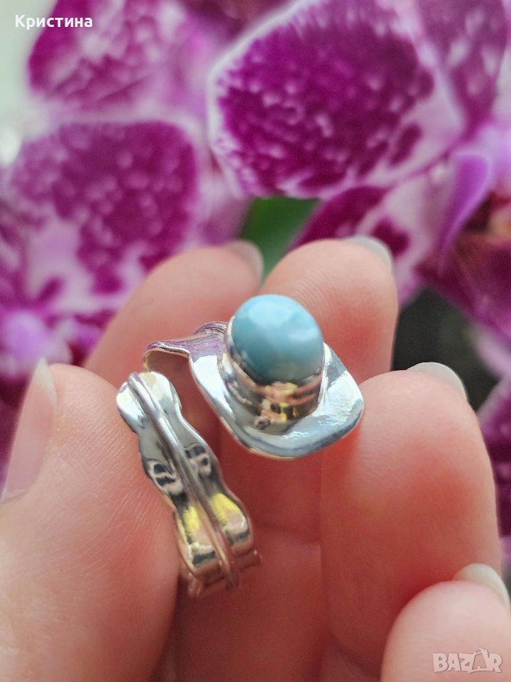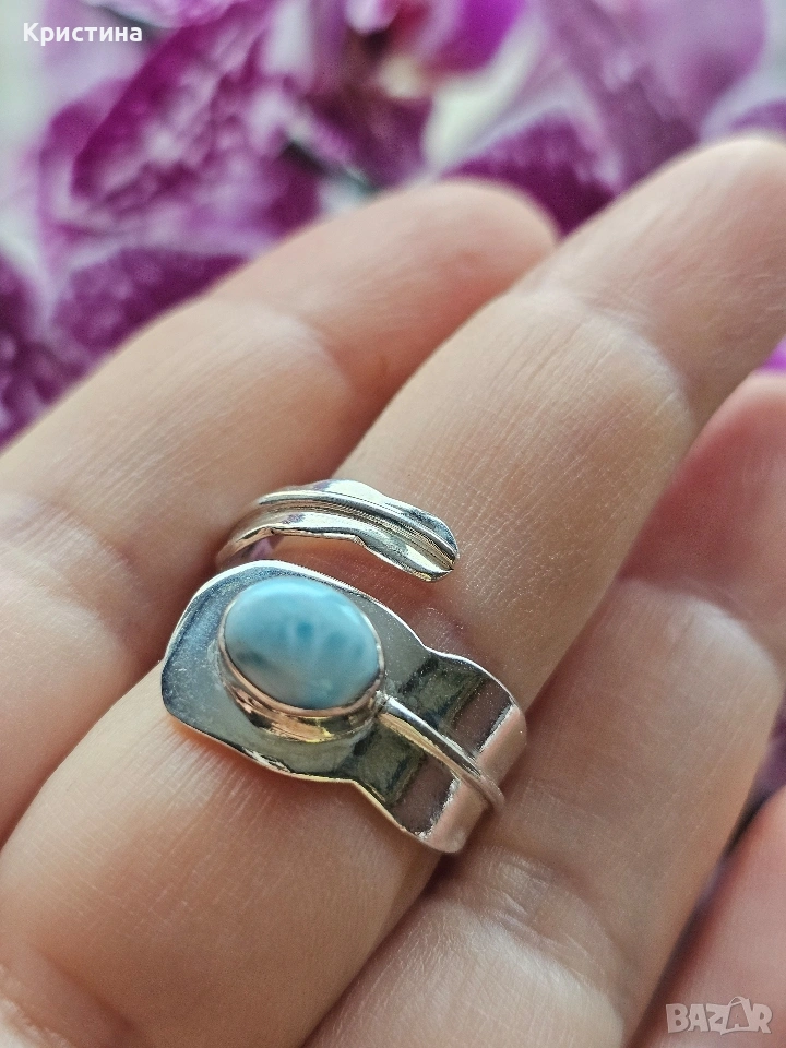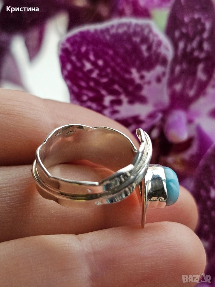 Красив сребърен пръстен с Ларимар → Обява 53904812