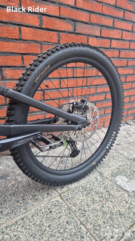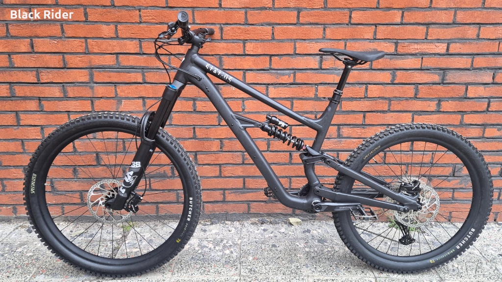 Нов планински алуминиев Trail/Enduro велосипед, от най-висок клас, SPECIALIZED STATUS 170 2, с 29"/27,5" Mullet Mixed Wheel size, окачване FOX FLOAT 38 Rhythm, GRIP 29 170 mm. ход отпред, FOX DHX Performance 170 mm. ход отзад, четирибутални спирачки TRP Trail EVO с дискове/ротори 203 мм., трансмисия Shimano Deore, M6100 1х12, дропер X-Fusion Manic с команда от кормилото, кормило/бар Specialized, 6061 alloy, курбели Shimano Deore, платформени педали с пинове. Велосипедът е чисто нов с размер на рамката L - S4 за ръст 173 - 183 + см. ( Наличен и XL - S5 размер)