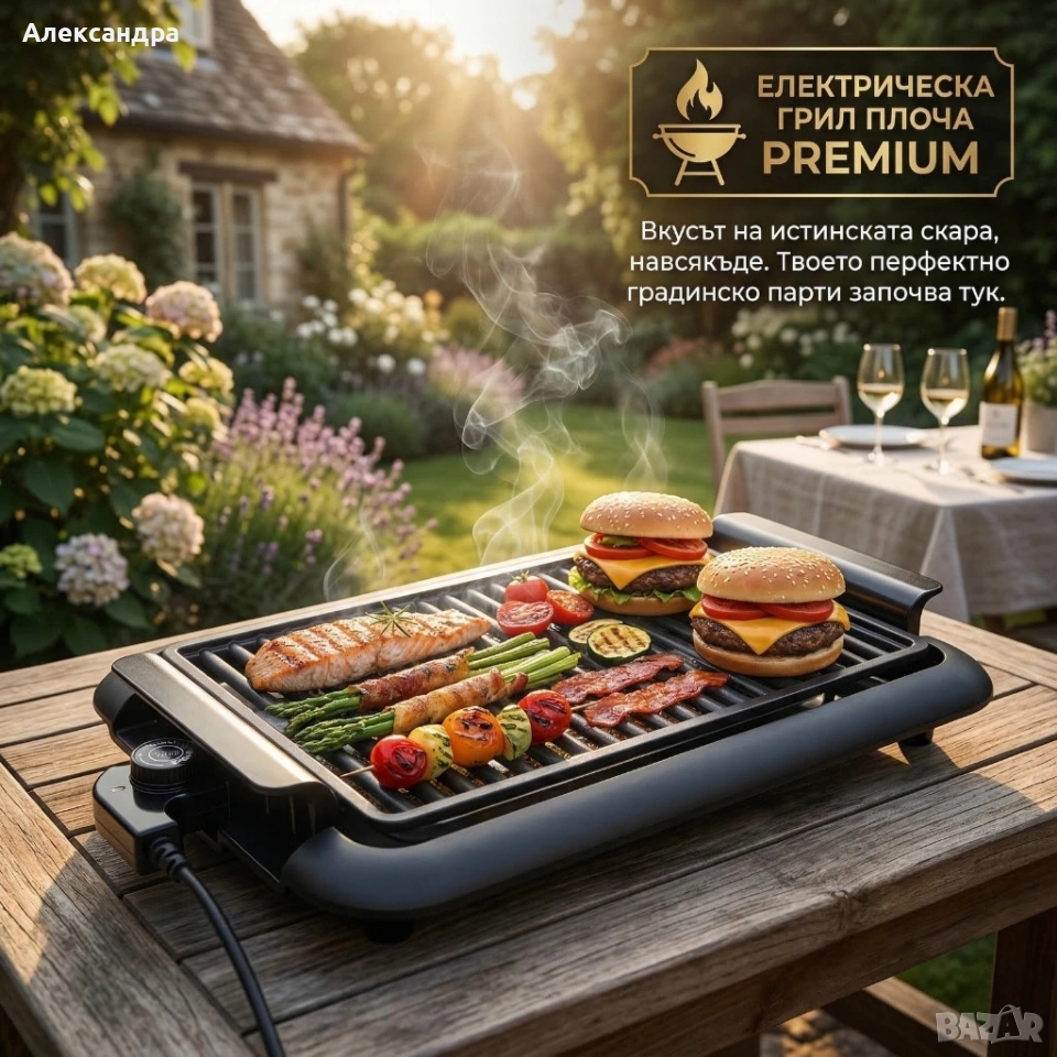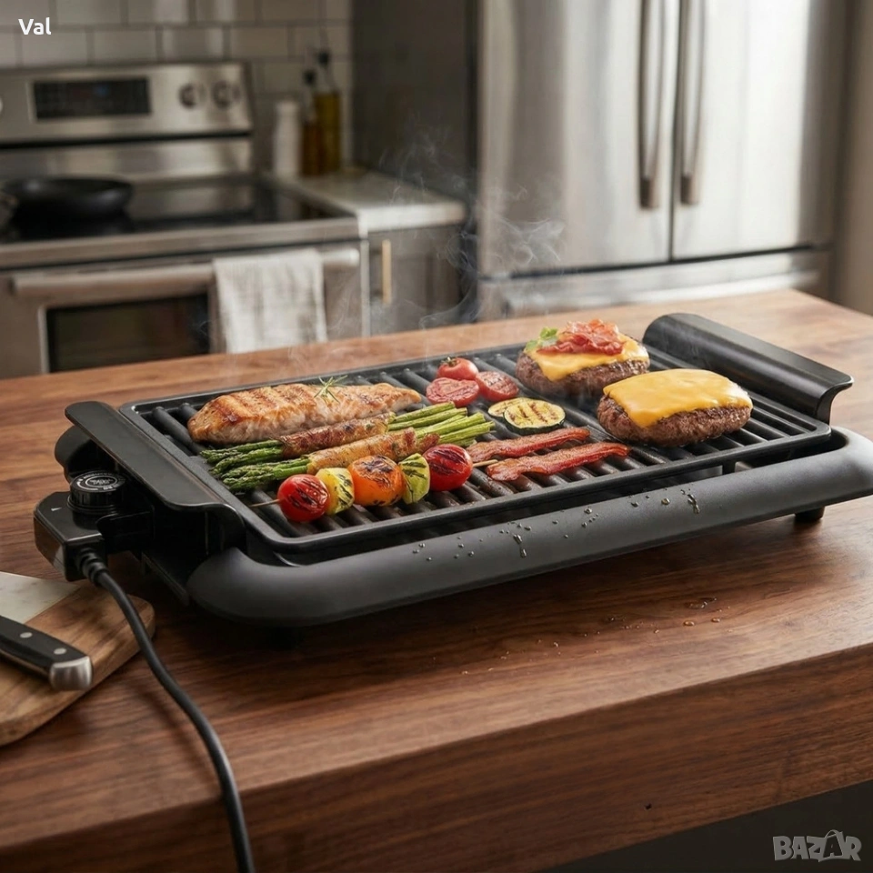 Електрическа настолна скара 1200W без дим – Преносимо барбекю за балкон и градина, 38x25 см