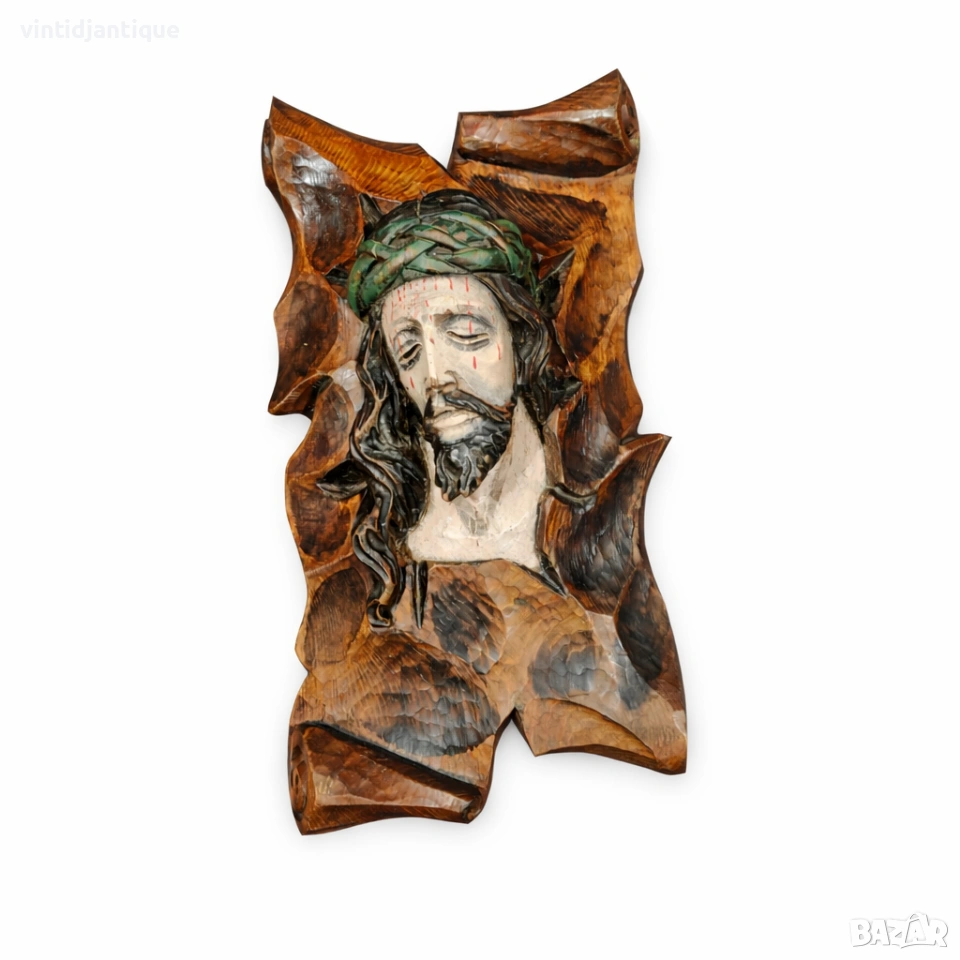 Дърворезба на лицето на Исус Христос с трънен венец → Обява 53905159