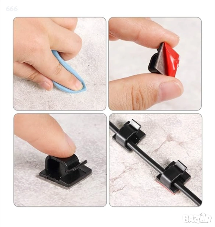 50 броя Самозалепващи подложки с кабелна скоба 2.6см / 2.6см → Обява 53905223
