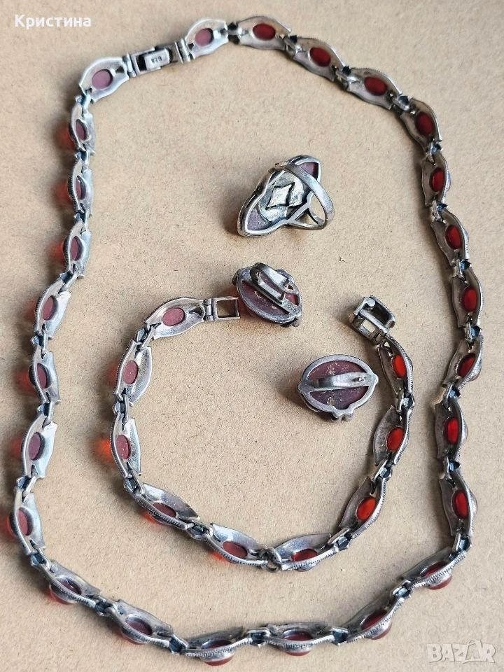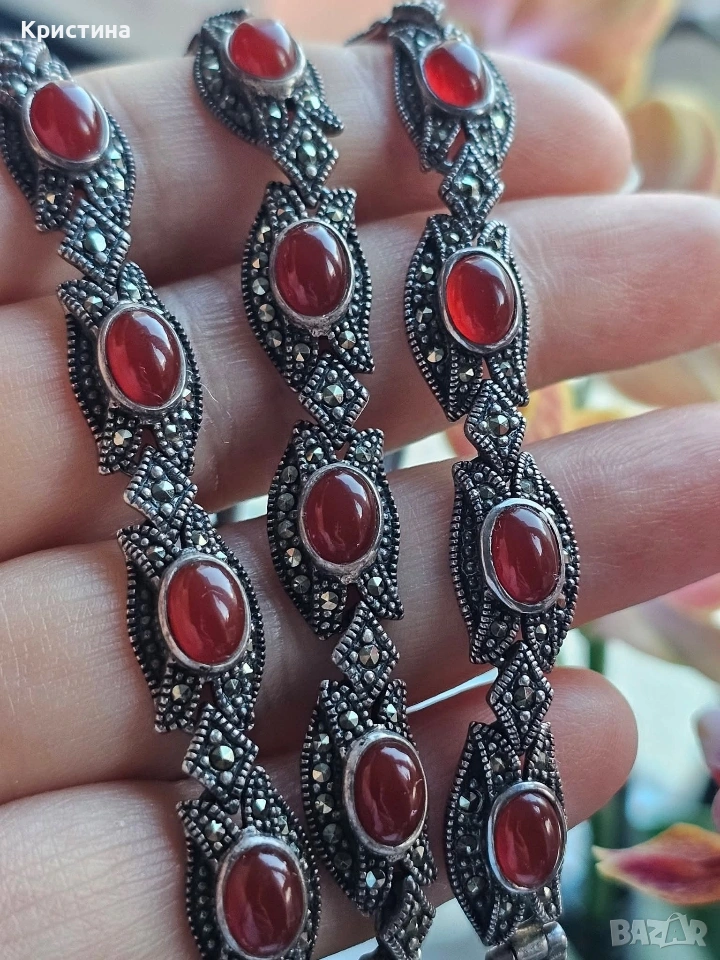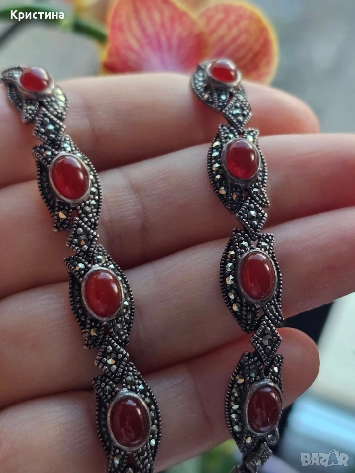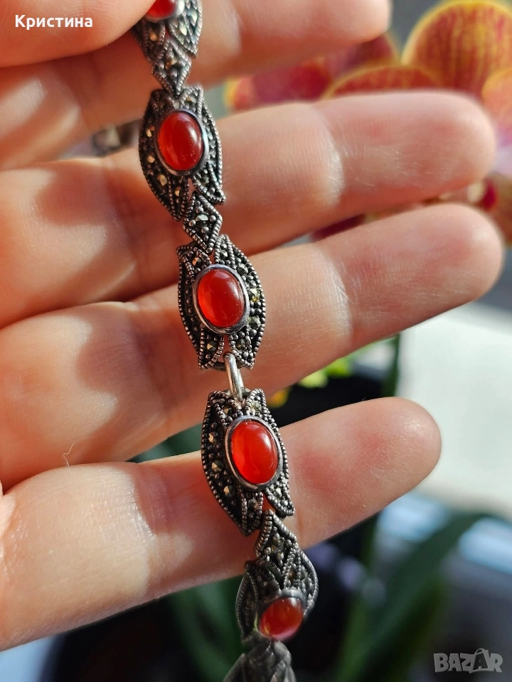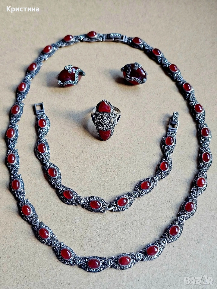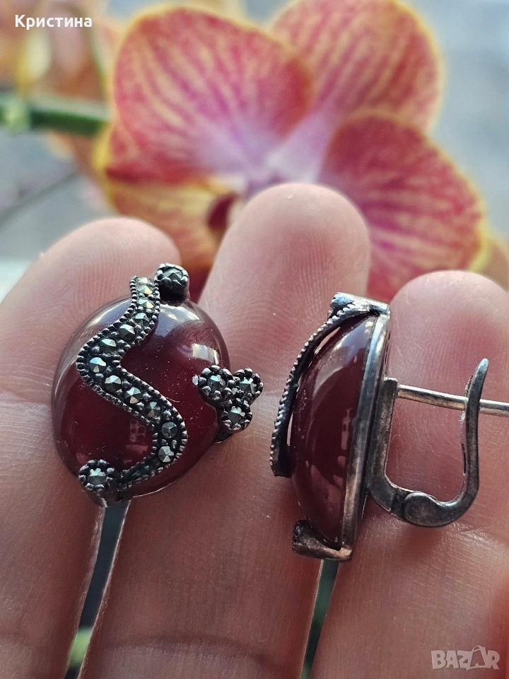 Винтидж сребърен комплект с Карнеол и марказити → Обява 53905837