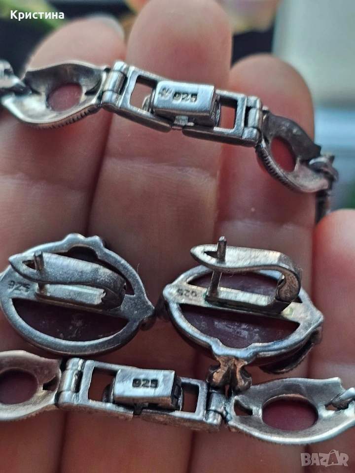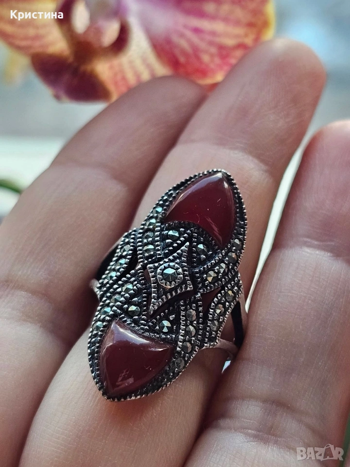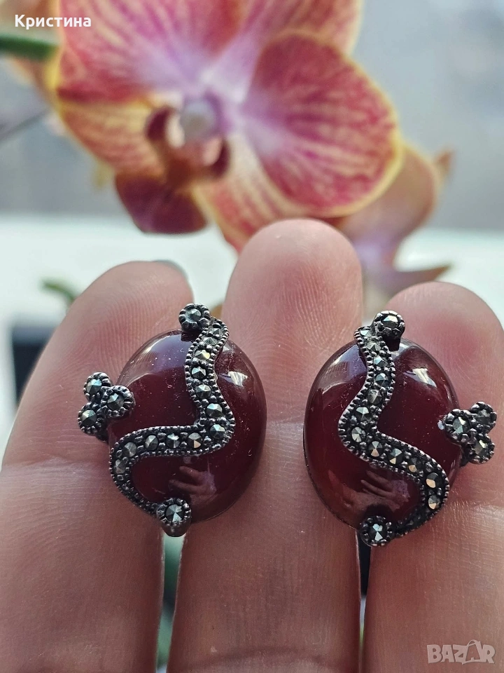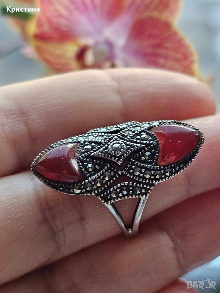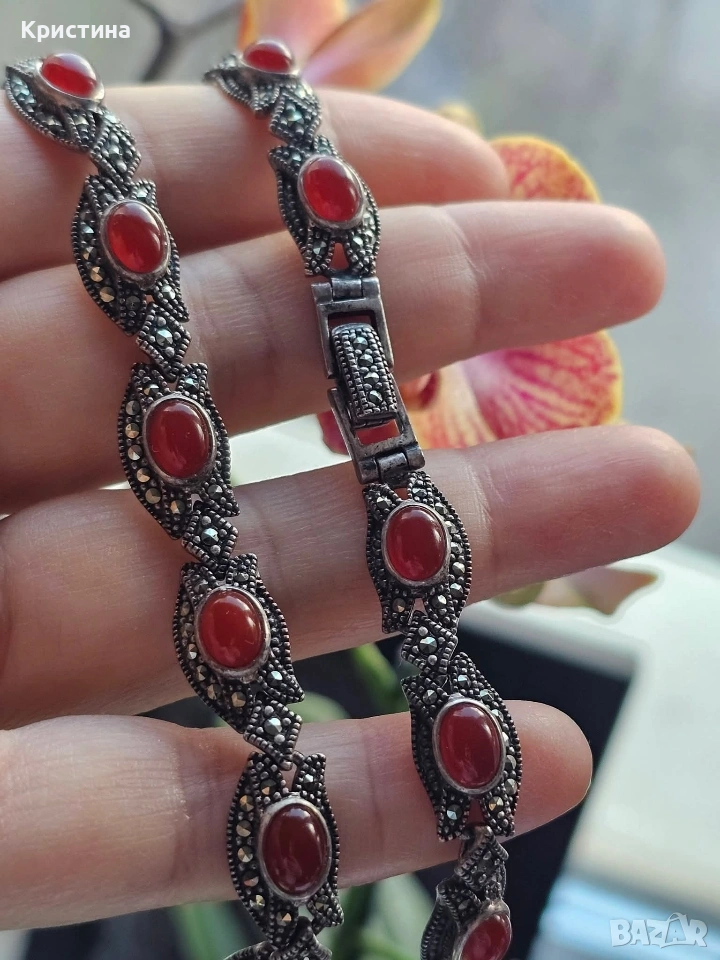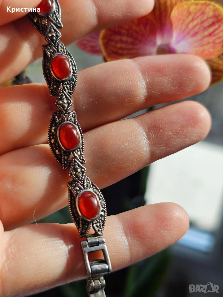 Винтидж сребърен комплект с Карнеол и марказити → Обява 53905837