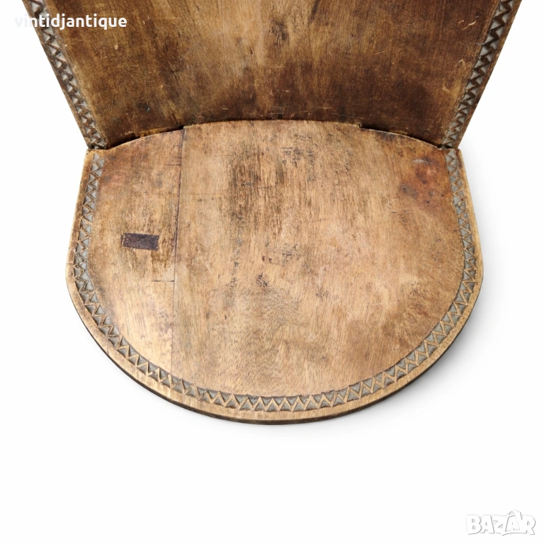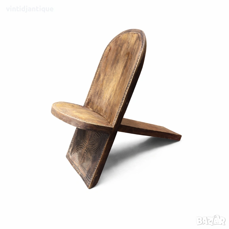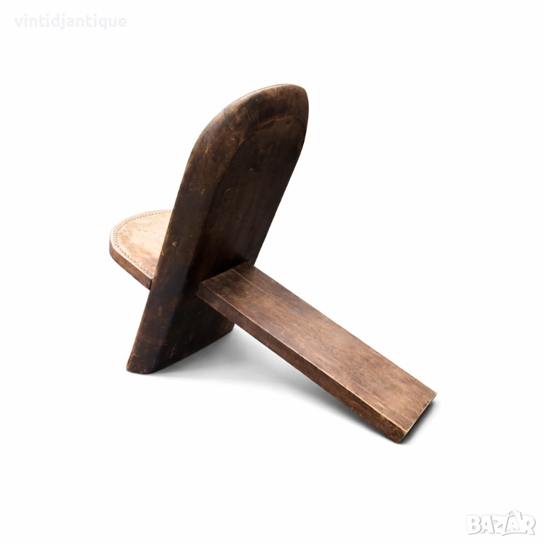 Африкански стол за „палабра“ или стол за наблюдение на звездите състоящ се от две отделни дървени части, които се сглобяват чрез промушване една в друга