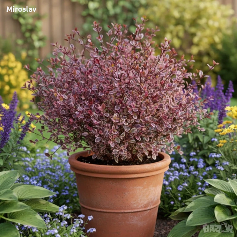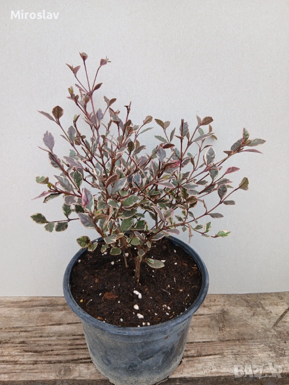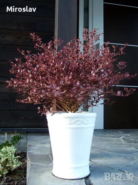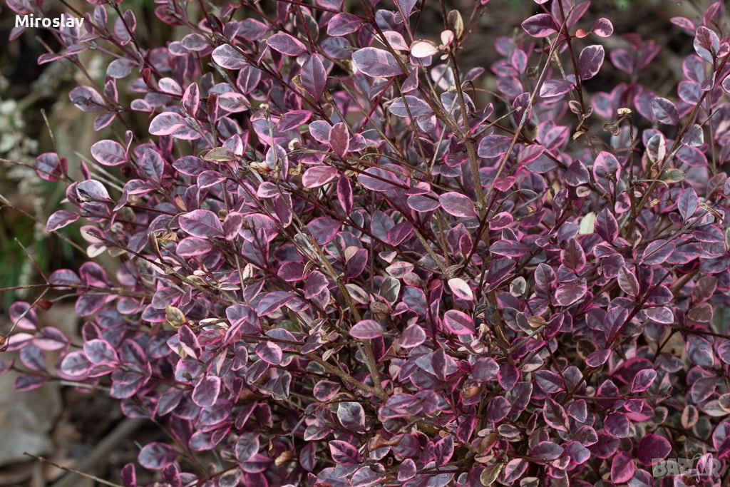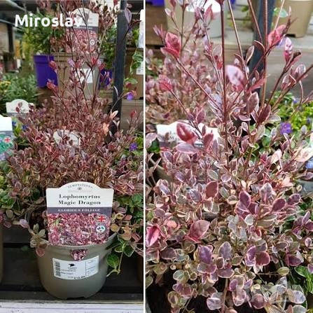 -Lophomyrtus ralphii 'Magic Dragon' е истинско бижу за градината или терасата. Това е вечнозелен храст, който произхожда от Нова Зеландия и е ценен най-вече заради невероятната си окраска.Листата са малки, лъскави и леко вълнисти. Най-интересното е цветът им – микс от кремообразно бяло, розово и наситено червено-лилаво, като нюансите се променят според сезона и светлината.През лятото (обикновено юли-август) цъфти с малки, бели и ароматни цветове, които приличат на малки пухкави топчета заради дългите си тичинки.