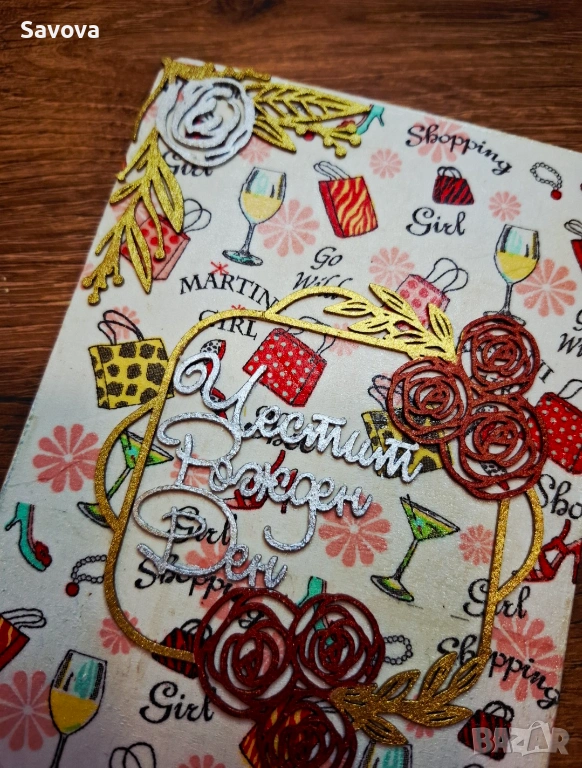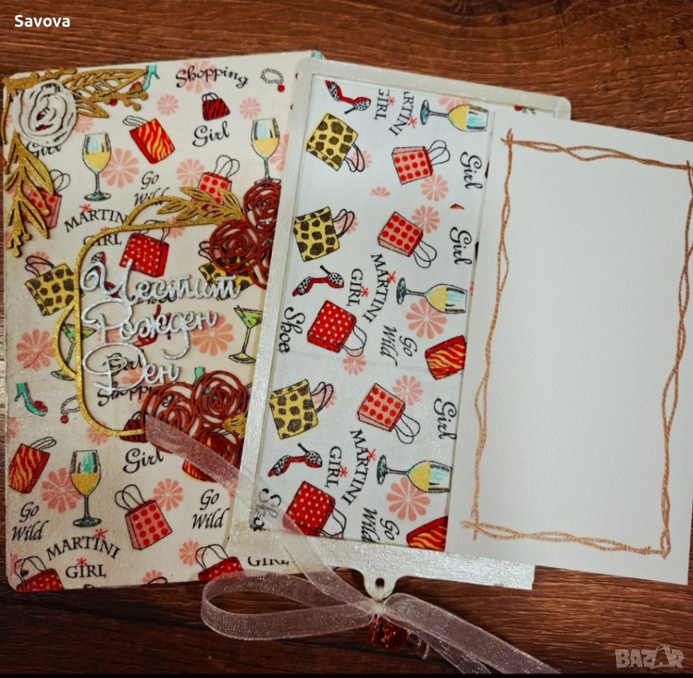 Дървена картичка плик за рожден ден "Martini girl" → Обява 53906226