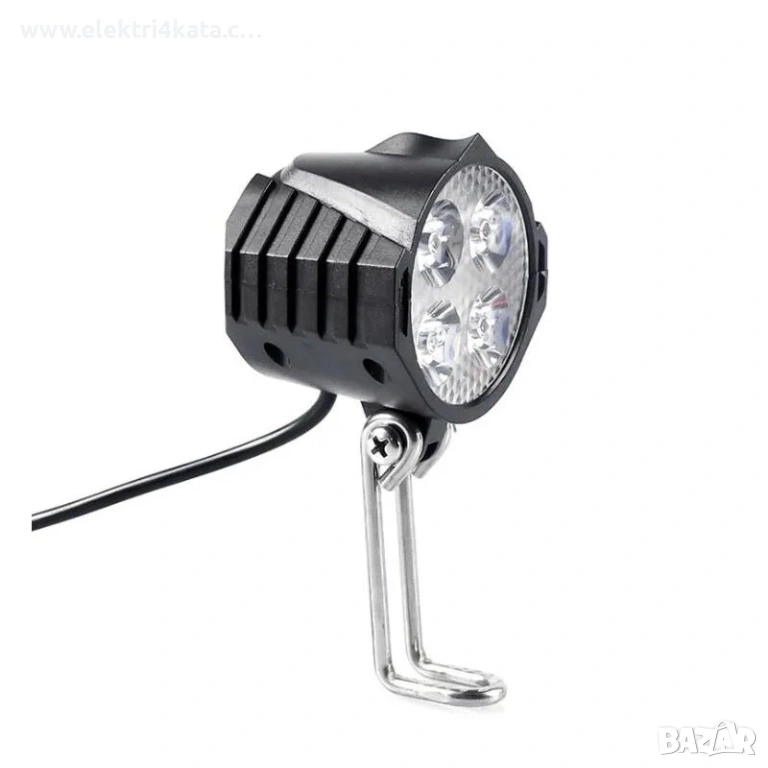Мощен LED фар с вграден клаксон за електрически велосипеди, скутери и