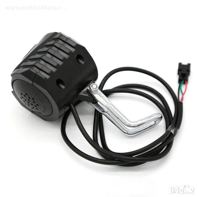 тротинетки. Комбинира ярка светлина и силен звуков сигнал, което го