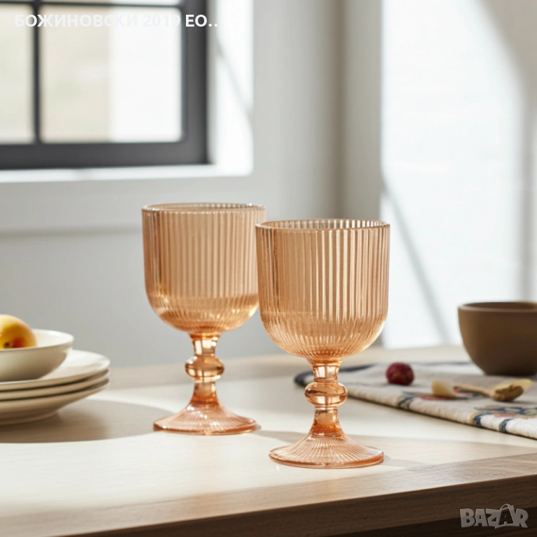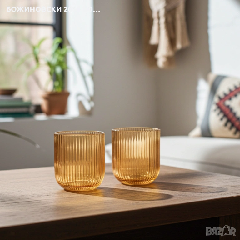 Серия чаши в кехлибарен цвят и релефно стъкло → Обява 53906234