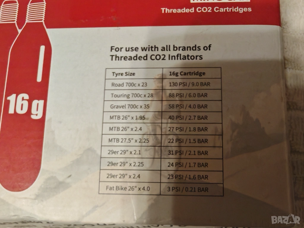 Подходящи за всички стандартни CO2 инфлатори за велосипеди.