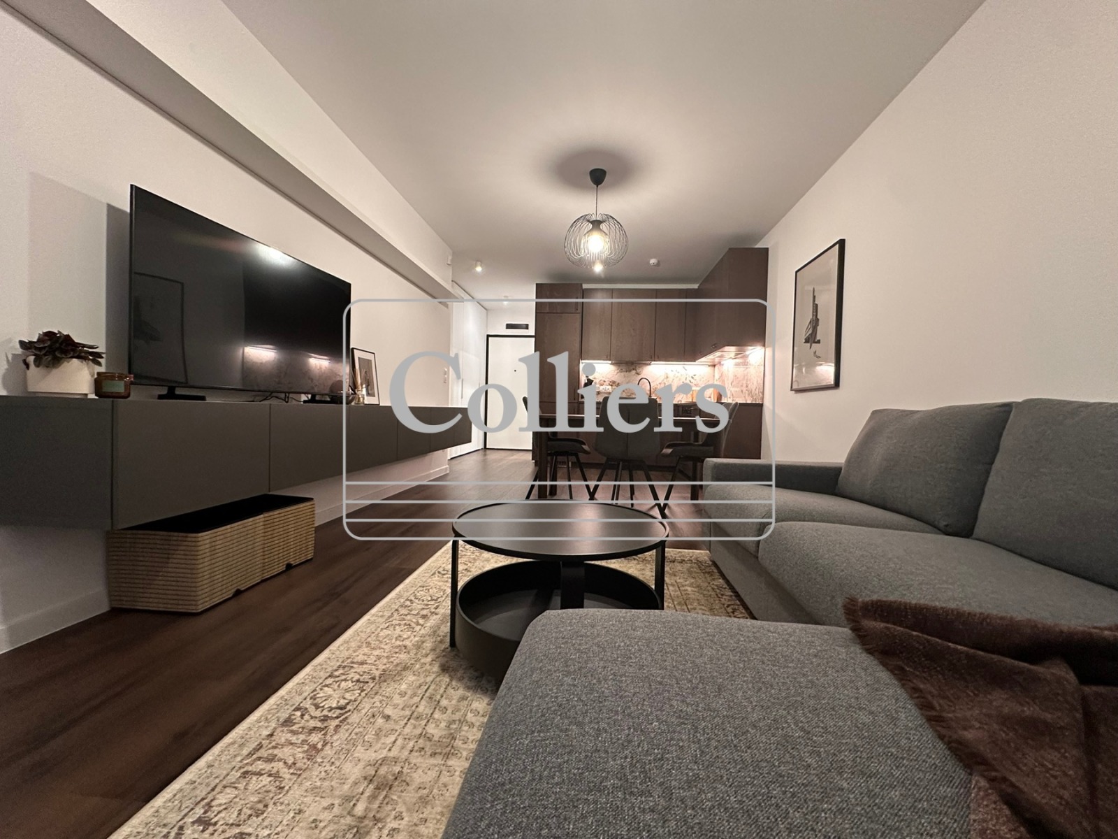 Colliers offers for rent a stylish one-bedroom apartment in the Avigea residential project by Artex, featuring high-end furnishings and meticulous attention to every detail.