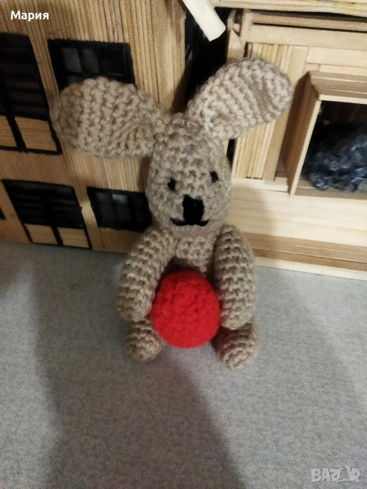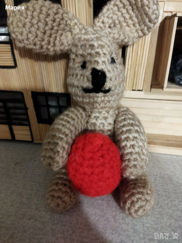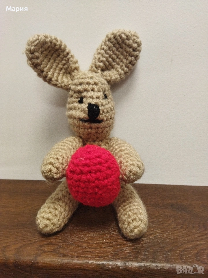 Ръчно изплетен заек със червено яйце, подходящ подарък за всяко дете. За повече информация пишете на ЛС. Моля разгледайте и другите мой обяви може да си харесвате и други неща.