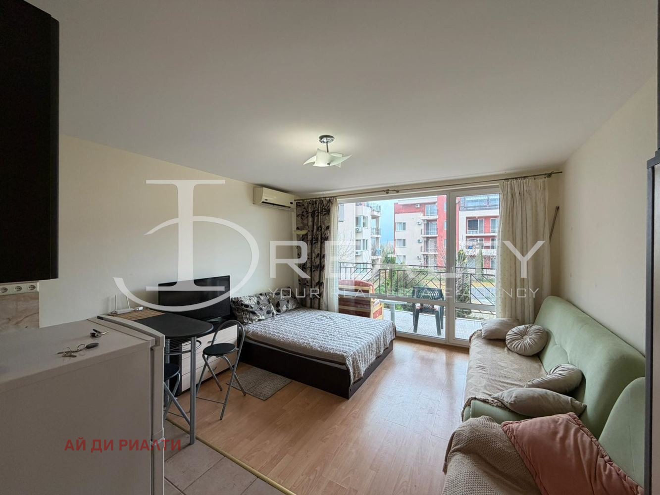 ID Realty има удоволствието да Ви представи светъл едностаен апартамент в затворен комплекс в к.к. Слънчев бряг. Апартаментът се състои от хол с кухненски кът, баня с тоалетна и тераса. Издава се обзаведен и готов за живеене. Жилището се намира в затворен комплекс Форт Нокс Холидей с басейн, и контролиран достъп. Годишната такса поддръжка е 13 на кв.м. на година. Подходящ е както за целогодишно живеене, така и с цел инвестиция за отдаване под наем.