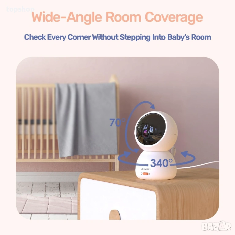 Това не е обикновен бебефон. Възможността да го гледате на телефона си, докато сте на работа или пазарувате, докато някой друг гледа детето вкъщи, е огромно предимство. Марката JeeBer е известна с надеждността си и лесната настройка (само в 3 стъпки).