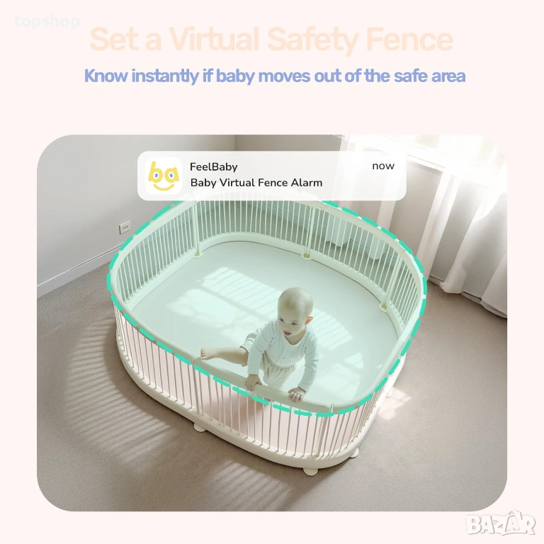 Виртуална ограда: Можете да зададете "зона за безопасност" в приложението и ще бъдете известени, ако детето излезе от нея (изключително полезно за прохождащи деца).
