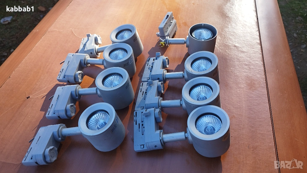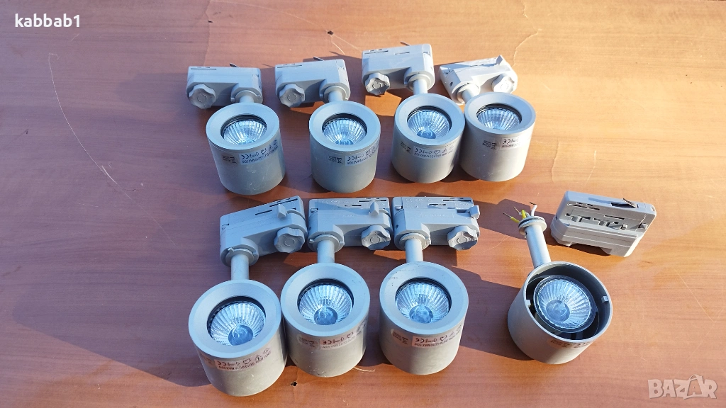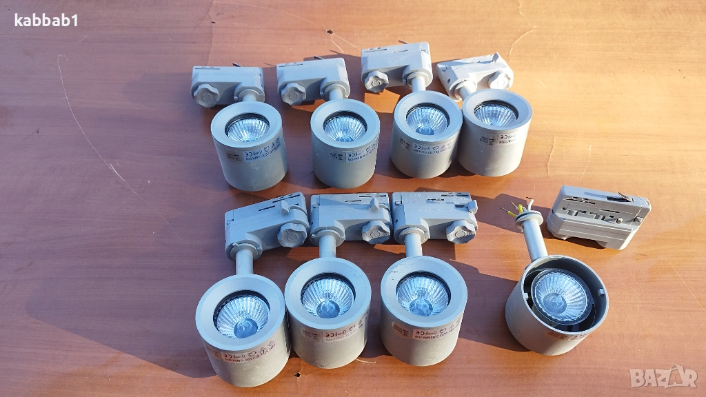 Продавам 8бр спотове за релсова система с GU10/50W/230V 10A, цокълът за захват към релсата е Powergear Fmax. Спотовете се въртят и могат да се насочват. Цената за брой е 10€. Цената за 8бр е 57€. Лампи за релса , луни