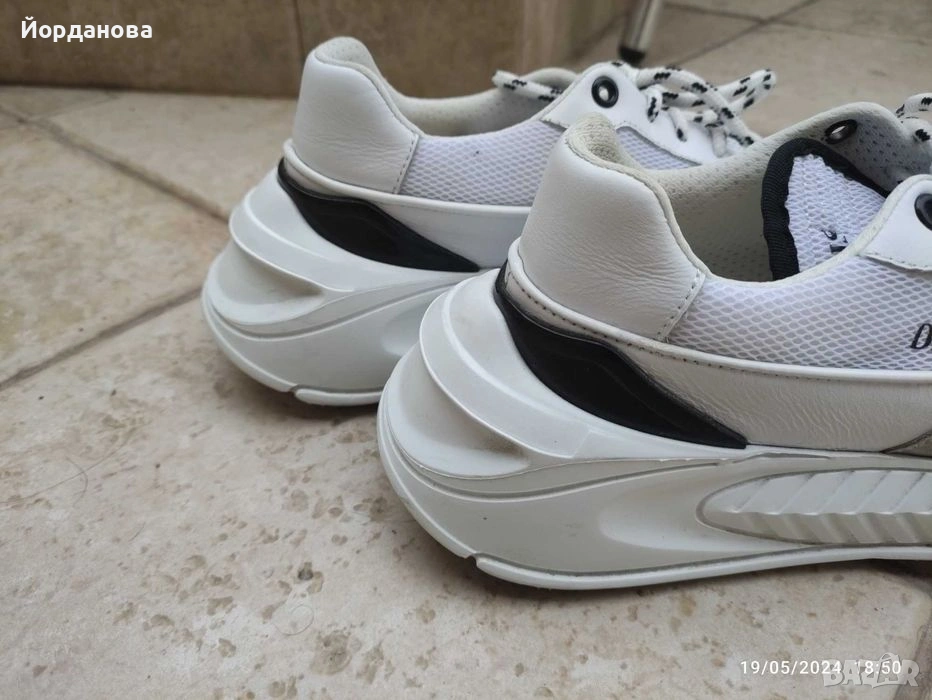 Дамски маратонки естествена кожа, ефектна подметка,номер 38.обувани 4-5 пъти.