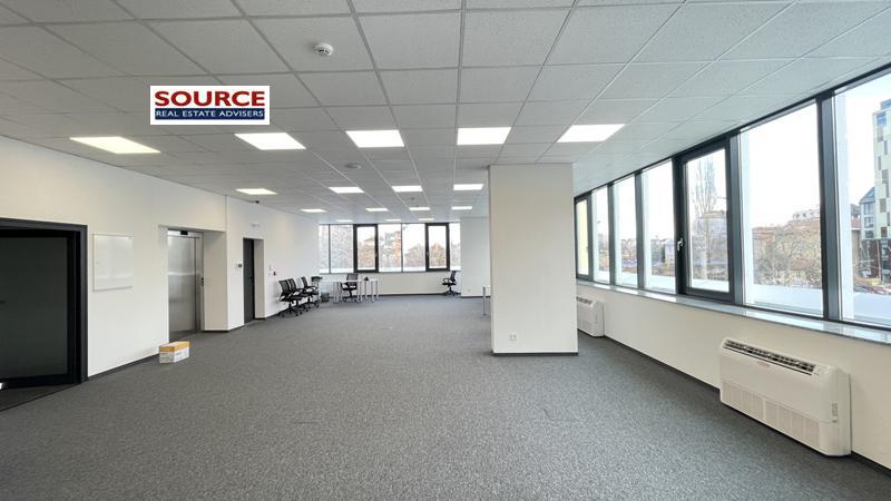 2. Разпределение: 3 големи Open space помещения, кухненски бокс, сървърно помещение, 6 wc. Офисът може да бъде изцяло с Open space разпределение или допълнително преграден според изискванията на Наемателя.